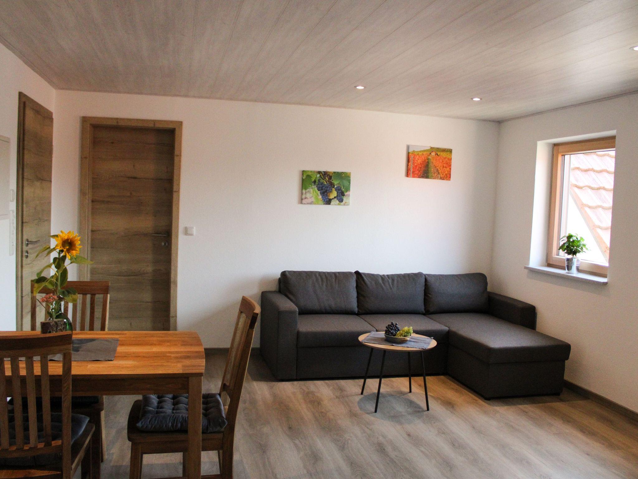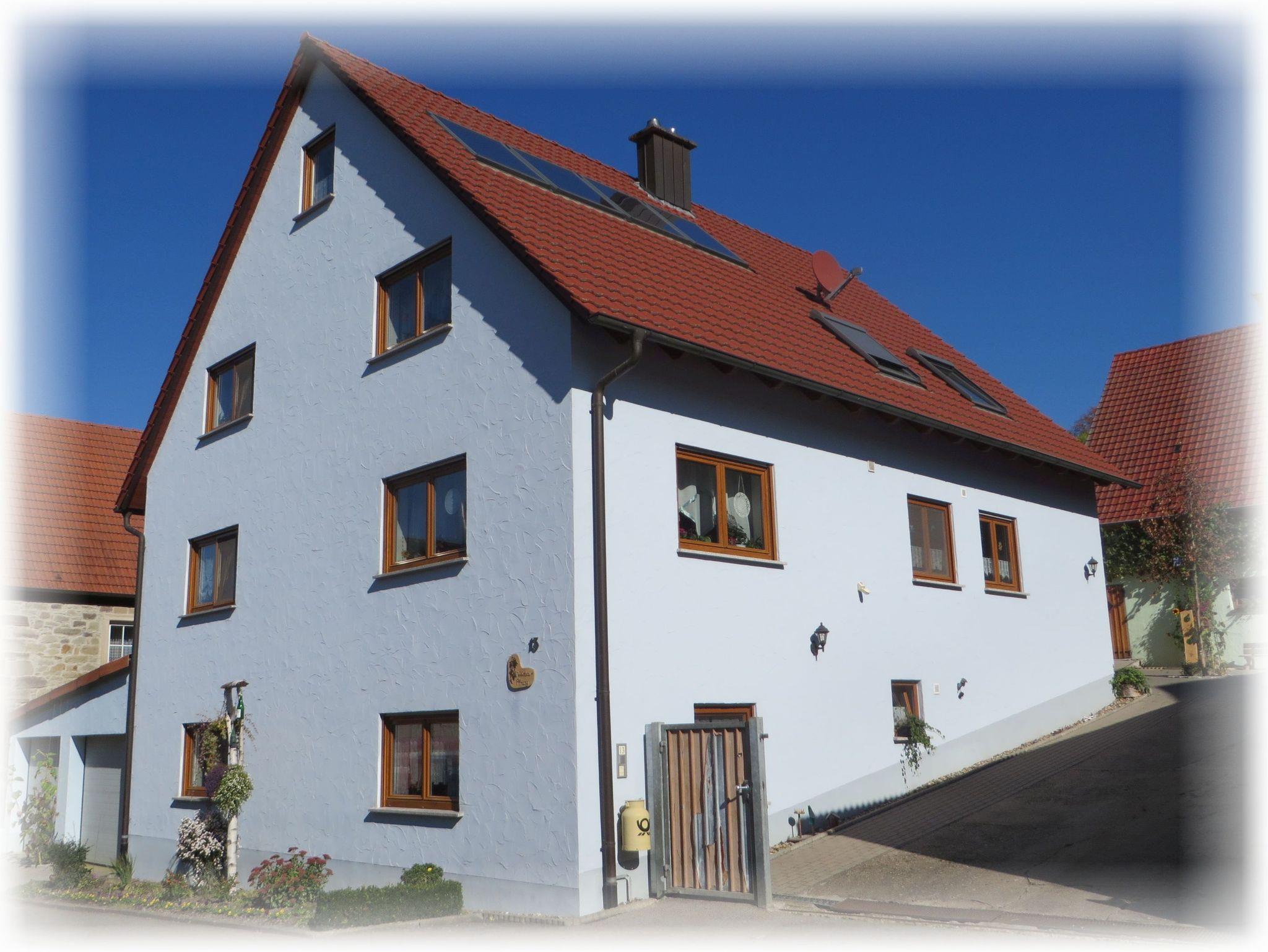 Sie wohnen in einer liebevoll eingerichteten neuen Ferienwohnung, im Obergeschoß eines Nebengebäudes, direkt am Steigerwald-Panoramaweg gelegen.