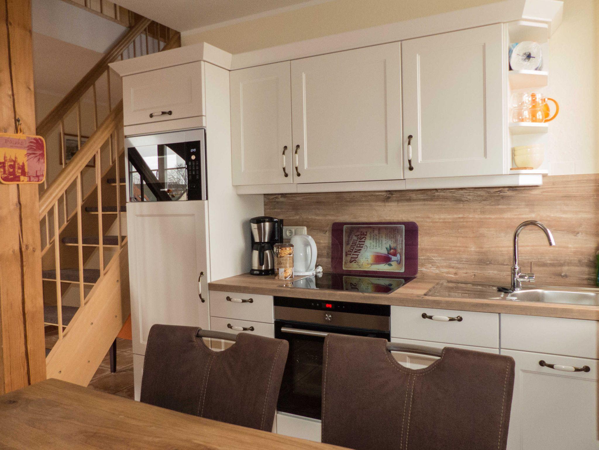 In der unteren Etage können Sie es sich auf der riesigen Sofaecke beim Lesen oder Fernsehen bequem machen oder in der hochwertig ausgestatteten Küche mit Markengeräten von Siemens Ihrer Kochfreude freien Lauf lassen. Der große Holztisch mit bequemen Schwingstühlen lässt sie bei einem gemeinsamen Essen den Alltagsstress schnell vergessen.