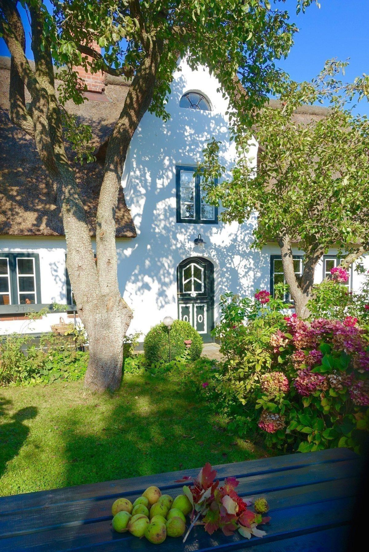 Idyllisches, reetgedecktes Ferienhaus in Midlum mit großem Garten und modernem Komfort für erholsame Urlaubstage.