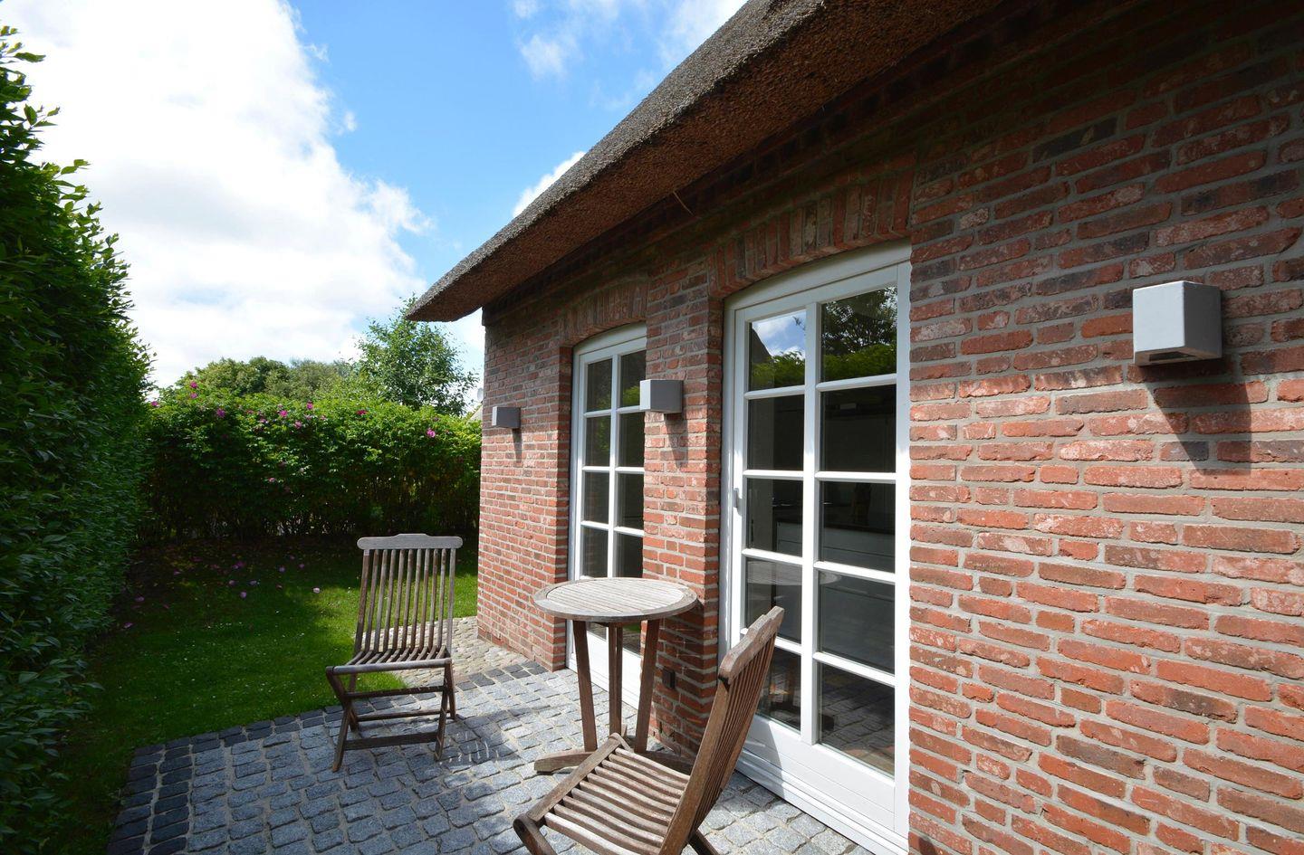 Entspannen Sie auf der eigenen Terrasse oder im Strandkorb im blickgeschützten Garten. Ihre Fahrräder können Sie im Gartenhaus unterstellen.