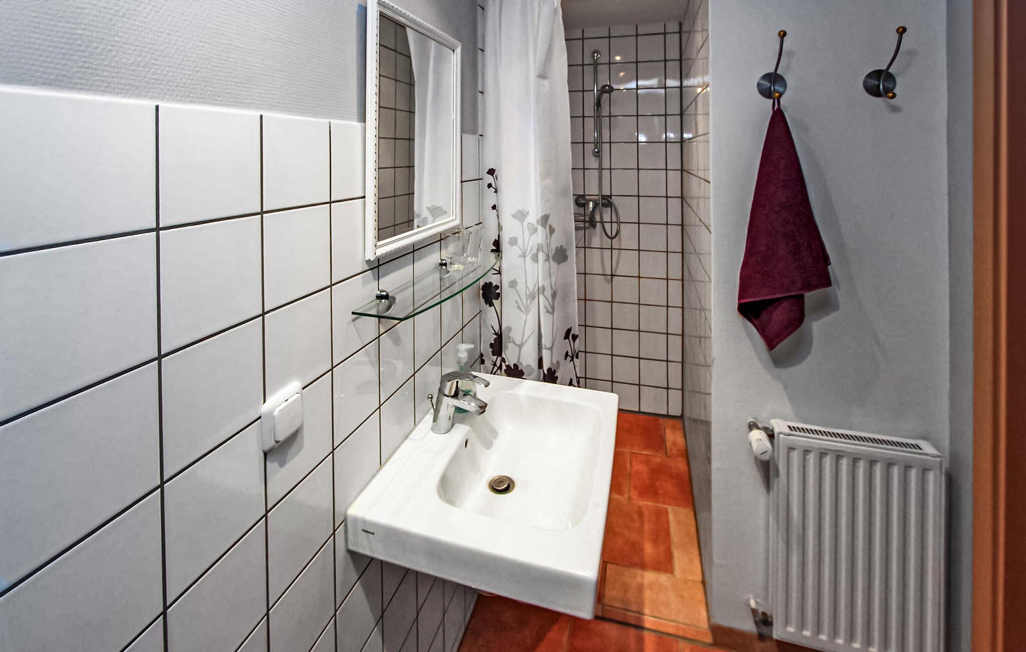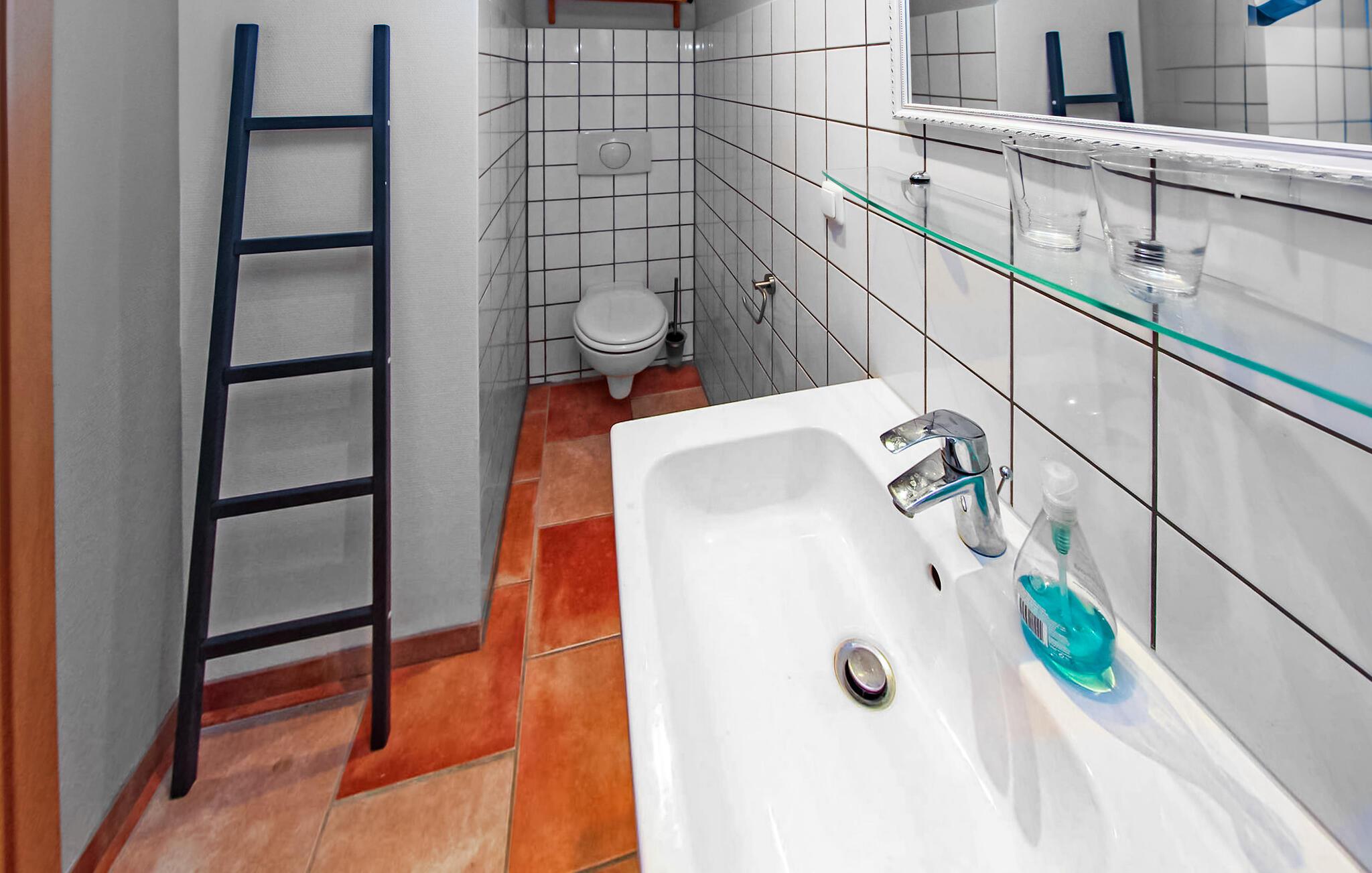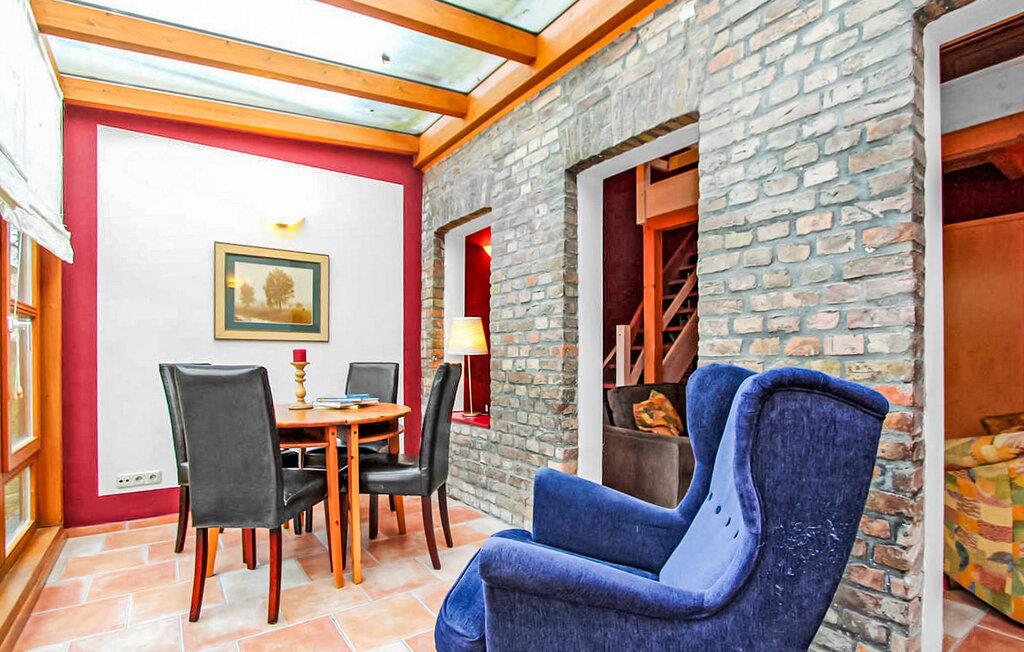 Die ca. 40 qm große Wohnung für 2 Erwachsene erstreckt sich über zwei Etagen. Im unteren Bereich befindet sich das Wohnzimmer (Couch, Flachbild-TV, Radio/ CD-Player), eine offene Küchenzeile (Kochplatten , Kühlschrank mit Tiefkühlteil), das Bad mit Dusche/WC sowie ein möblierter Wintergarten (Essecke). Über eine Treppe ist der offene Schlafbereich (1 x Doppelbett) im Obergeschoss erreichbar.