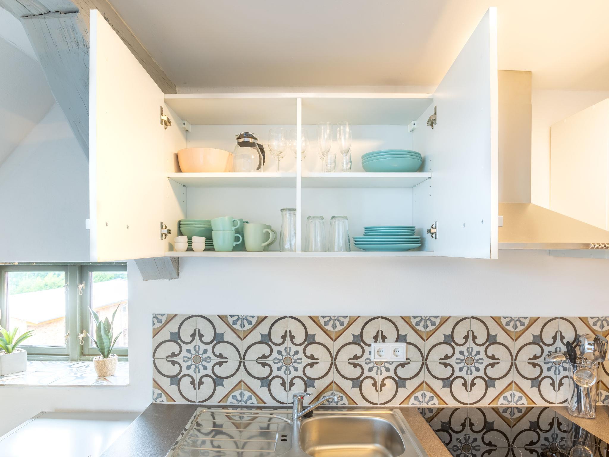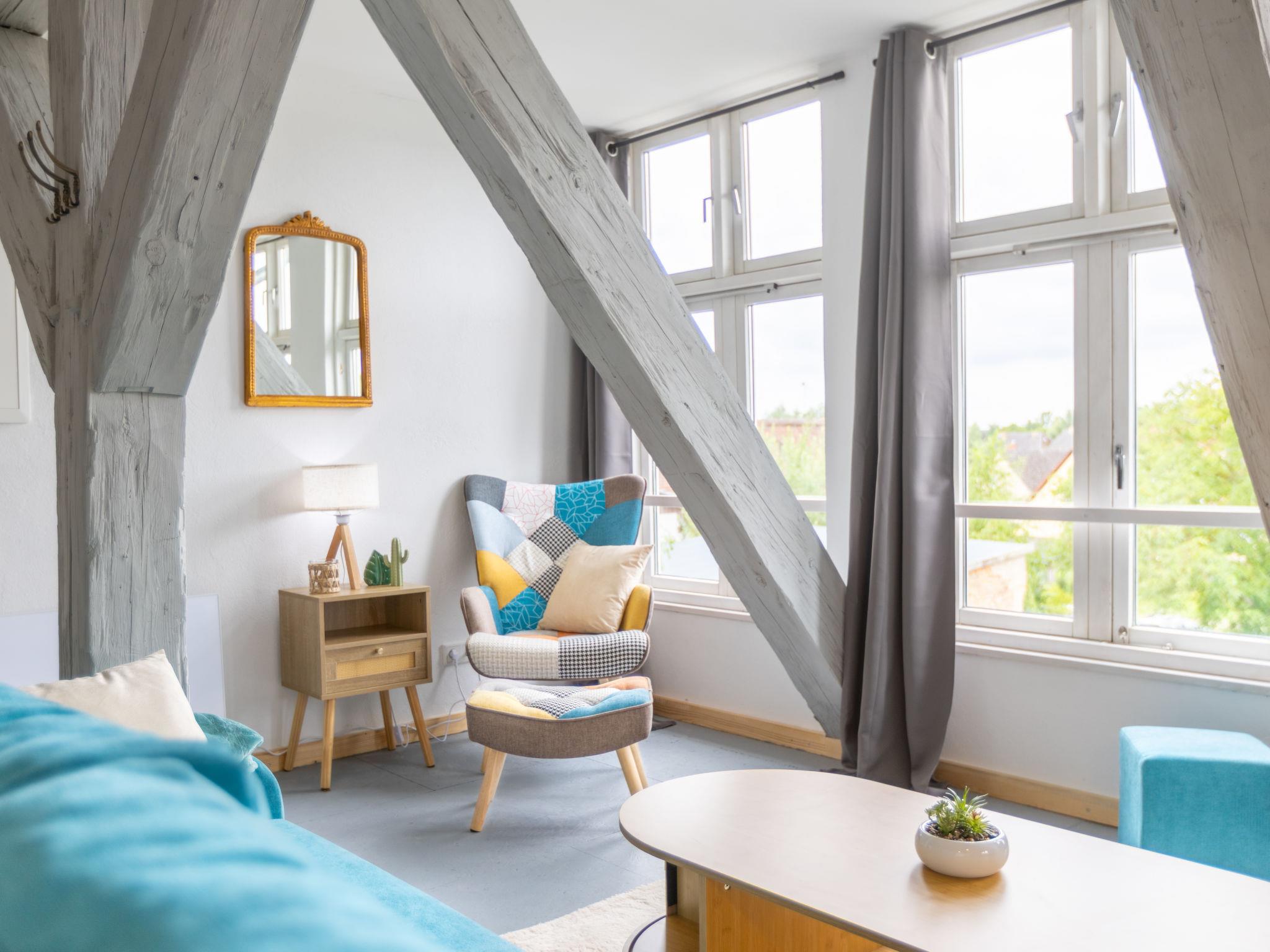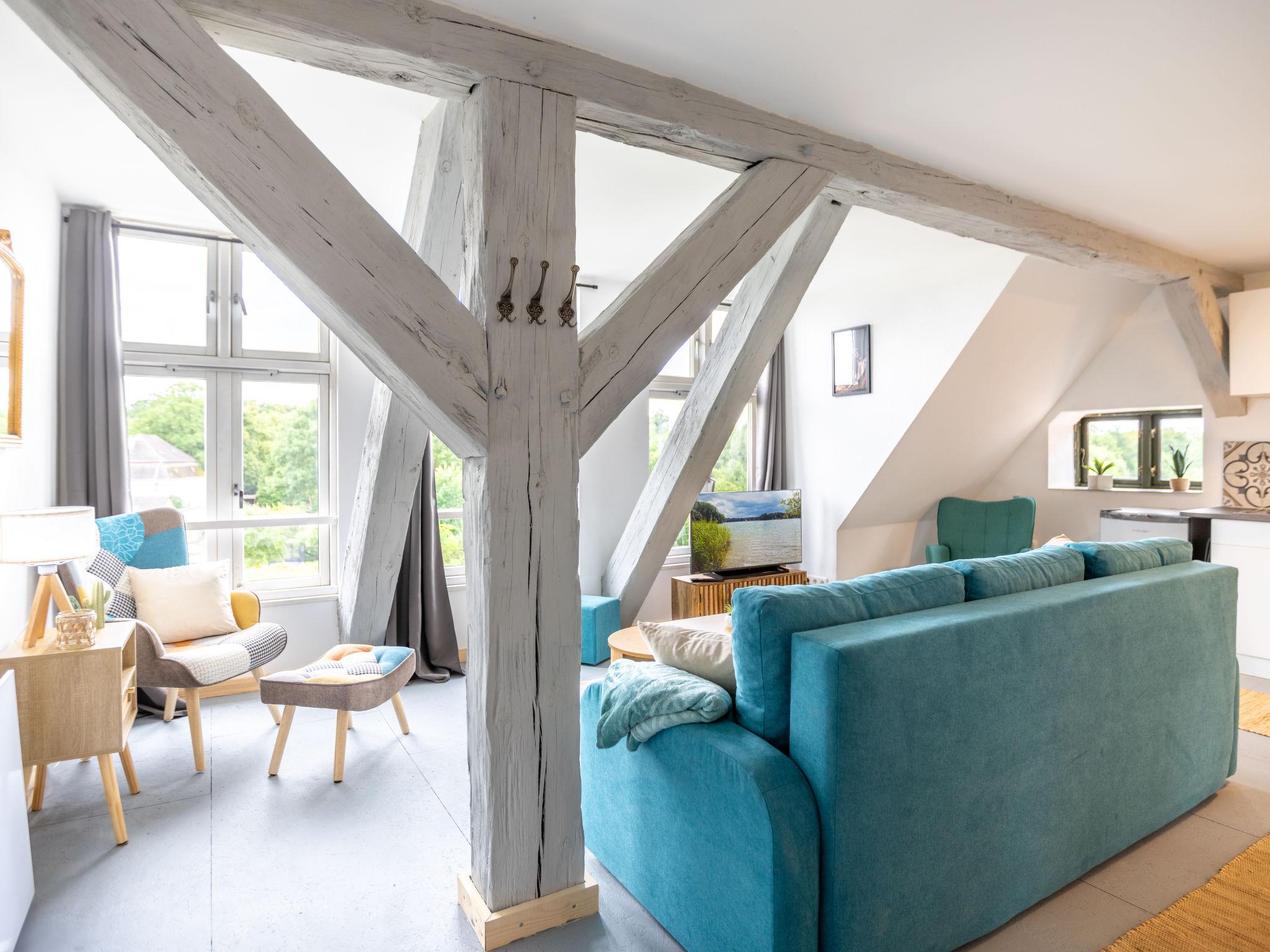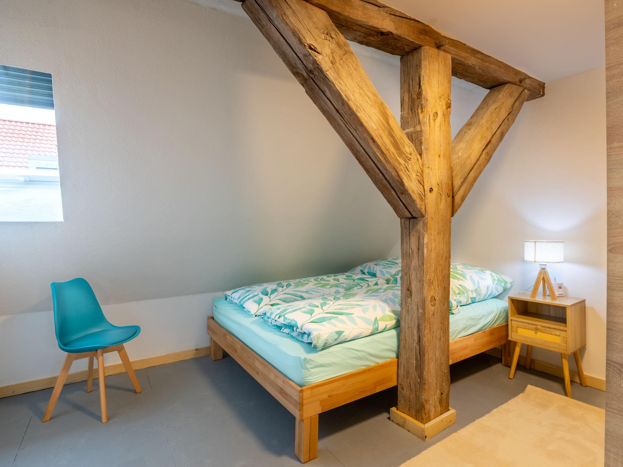 "King George III", 2-Zimmer-Wohnung 50 m2. Objekt geeignet für 2 Erwachsene. Hell, abgeschrägt, vollständig renoviert im Jahre 2025, rustikal und gemütlich eingerichtet: Dachgeschoss: (Wendeltreppe) abgeschrägtes grosses Wohn-/Esszimmer mit Sat-TV (Flachbildschirm), Radio. 1 Zimmer mit 1 Doppelbett (160 cm, Länge 200 cm). Offene Küche (Backofen, 4 Glaskeramikplatten, Toaster, Wasserkocher, elektrische Kaffeemaschine). Dusche/WC. E-Heizung. Zur Verfügung: Internet (WLAN, gratis). Parkplatz beim Haus. Bitte beachten: für Kleinkinder nicht geeignet. Nichtraucher-Unterkunft. Rauchmelder.
