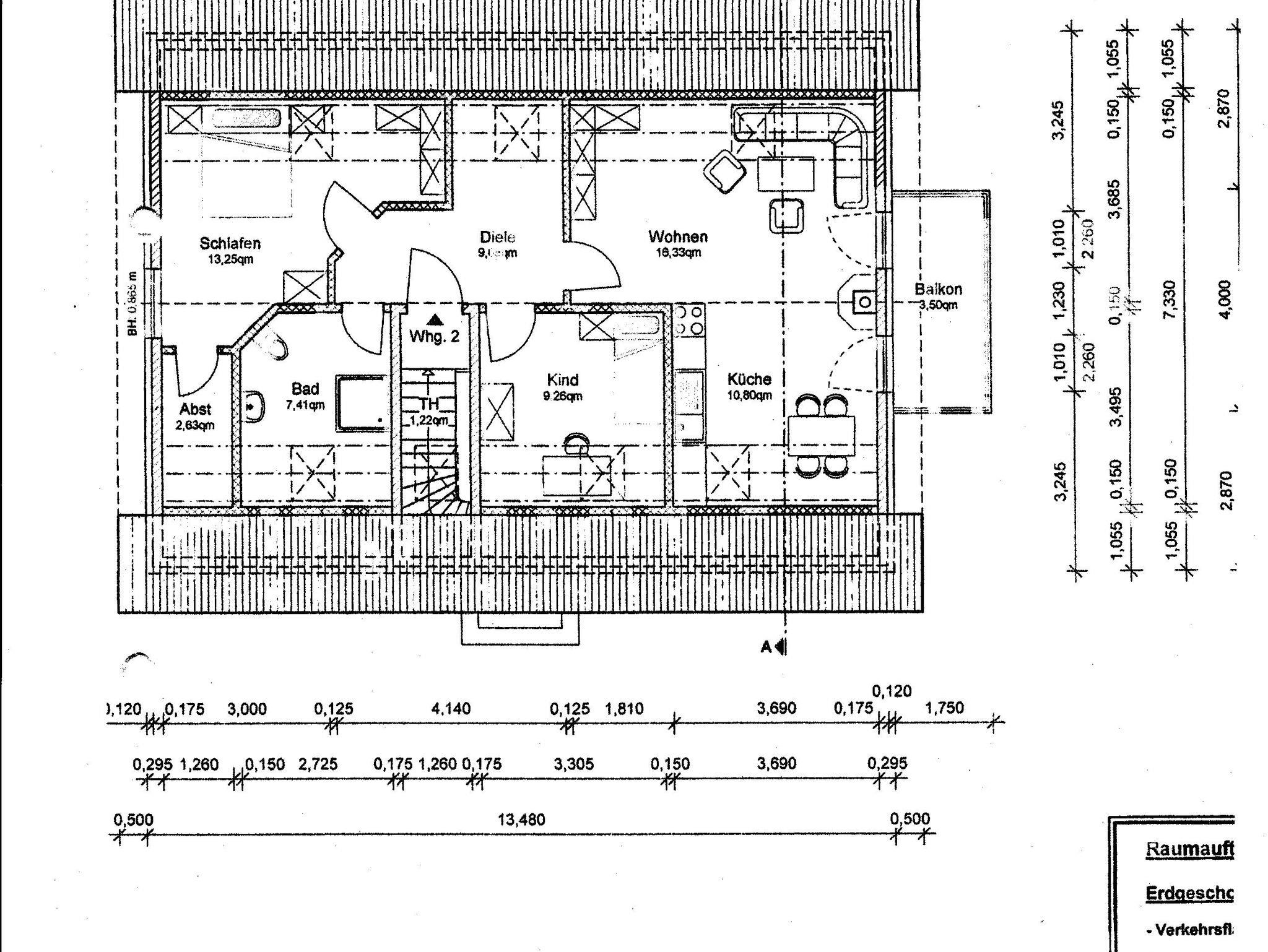 Die 2004 neu gebaute Ferienwohnung verfügt über eine Gesamtfläche von 75 qm. Die Ferienwohnung verfügt über 2 Schlafzimmer (1x mit Doppelbett, 1 x mit 2 Einzelbetten), einer voll ausgestatteten Küche mit Backofen, Spühlmaschine etc., ein Wohnzimmer (offen zur Küche), ein Badezimmer mit Dusche und WC und einen großen Flur. Ein Balkon mit Gartenmöbel und Sonnenschirm mit einer Größe von ca. 8 qm gehört ebenfalls zur Wohnung. Auch ein Grillplatz und eine Feuerstelle für gemütliche Abende stehen Ihnen für Ihren Aufenthalt zur Verfügung.