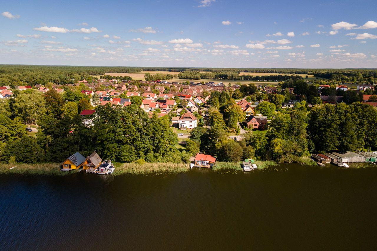 Modernes kleines 1-Zi-Appartement für 2+1 Pers. mit allen Annehmlichkeiten am Mirower See, Spielplatz, Badestrand & Restaurant gleich um die Ecke, WLAN, Waschmaschine, möblierte Terrasse, Boot und Standup Paddle Boards kostenfrei