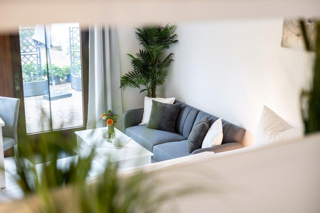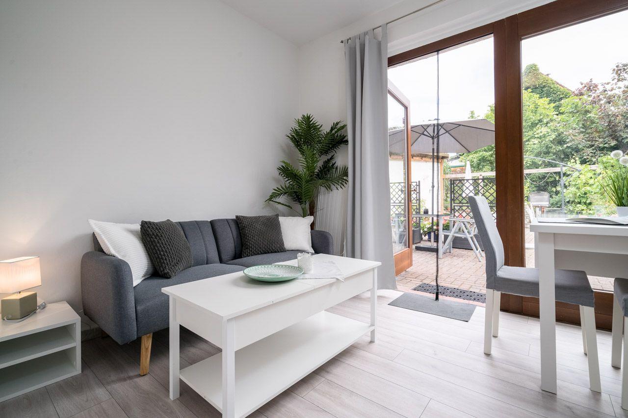 Dieses kleine aber moderne 1-Zimmer-Appartement mit kleiner Küche, ein Wohn-/ Schlafzimmer und ein Duschbad ist gut geeignet für z.B. einen Kurzurlaub oder Homeoffice max. für 2 Erw. + 1 Kleinkind (Kinderreisebett und -stuhl stehen kostenfrei zur Verfügung). Die kleine Küche ist komplett ausgestattet - Geschirrspüler, Kühlschrank, Minibackofen, Kaffeemaschine und Toaster u.v.m.. Das Wohn-/ Schlafzimmer verfügt über einen kleinen Essbereich, kleines Sofa, Insekten- und Sichtschutz, ein großer TV, Couchtisch zum Arbeitsplatz umbaubar. WLAN, Waschmaschine und eine möblierte Terrasse mit Stauraumschrank und Grill runden das ganze Angebot ab. Ihr eigener Parkplatz befindet sich direkt an der Wohnung auf dem Grundstück - die Fahrräder können Sie ebenfalls auf dem Grundstück an Ihrer Wohnung abstellen (Regenschutz haben Sie bitte im Gepäck) oder Keller oder in der Garage abgestellt werden. Ihr eigener Parkplatz befindet sich auf dem Grundstück. Zum Appartement gehören ebenfalls ein 2-er Kanu und 2 SUP´s ind Abstimmung mit anderen Gästen.