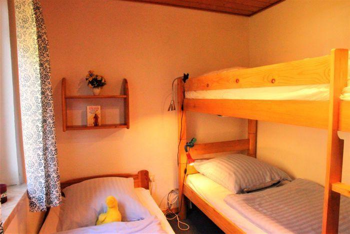 Die Doppelhaushälfte bietet Platz für bis zu 5 Personen auf einer Etage mit 2 Schlafzimmern, offenem Wohn- und Essbereich, Küchenzeile, Terrasse und Abstellraum.
