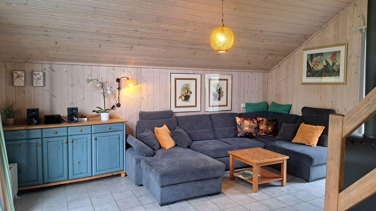 Das Ferienhaus im skandinavischen Stil bietet Platz für bis zu 6 Personen auf 2 Etagen mit 2 Schlafzimmern und offener Schlafgalerie, Wohn-/Essbereich, Einbauküche, Sauna, Terrasse, Abstellraum und Pkw-Stellplatz. Energiekosten werden nach Verbrauch abgerechnet.