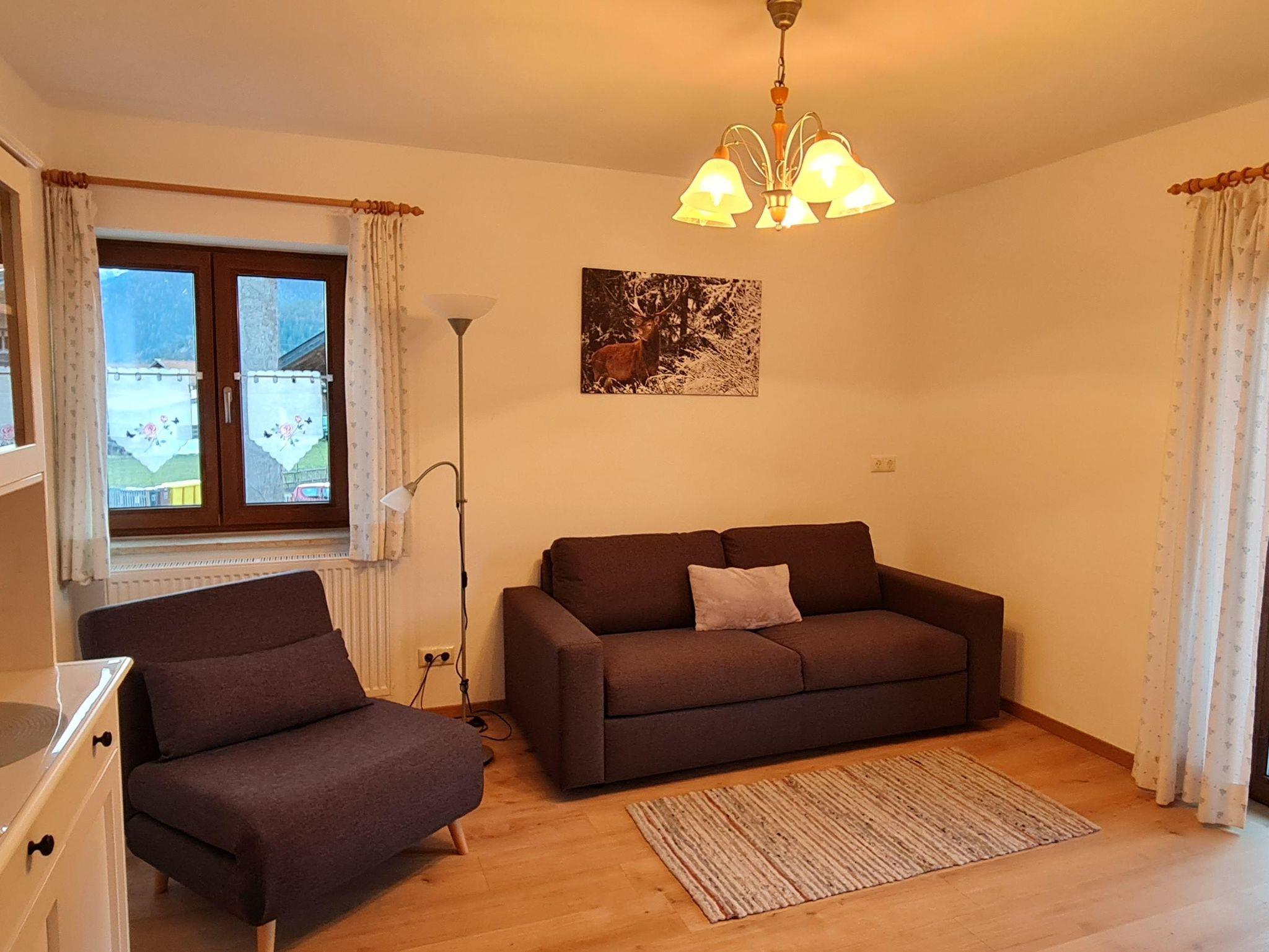 Im 1 Stock befindet sich unsre 60qm große Wohnung für bis zu 4 (3Erwachsene oder 2Erwachsene und 2 Kinder )Personen mit großem Balkon und wunderschönen Blick zum Karwendel .