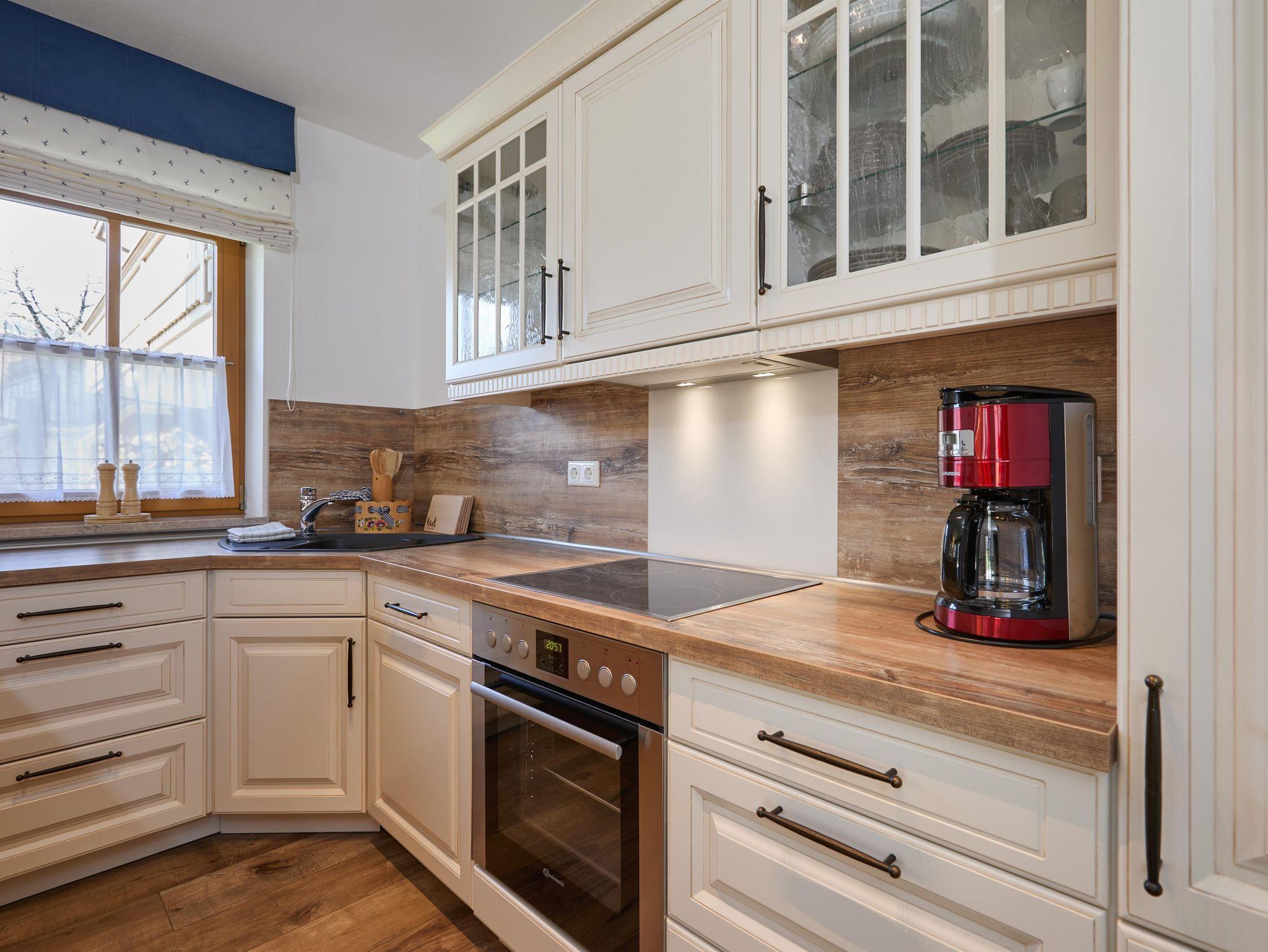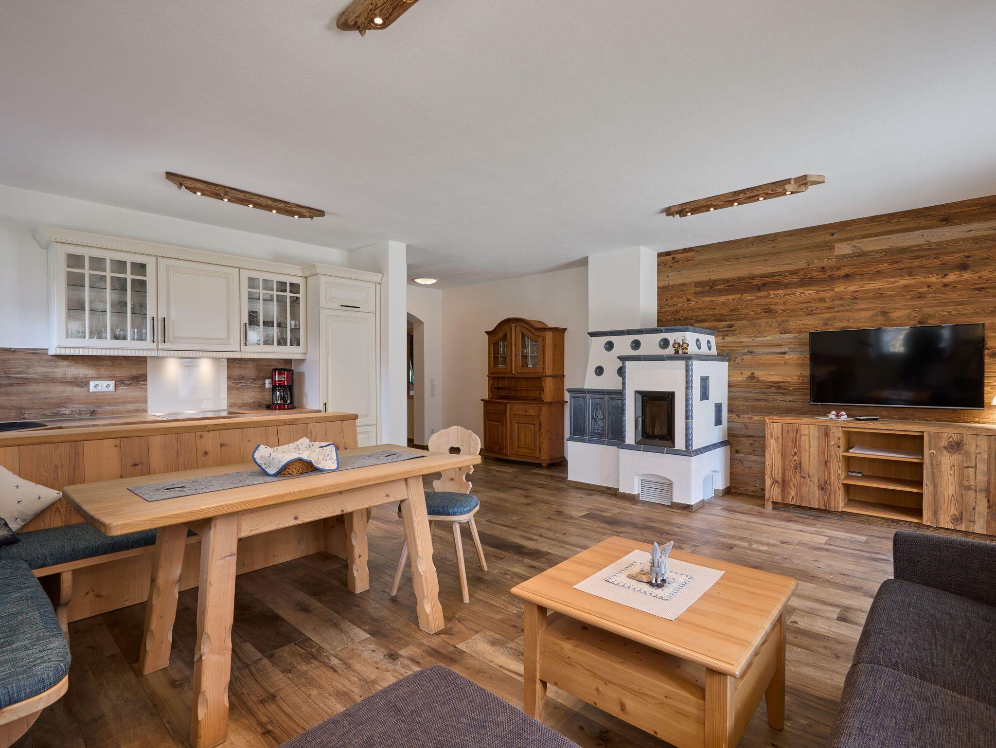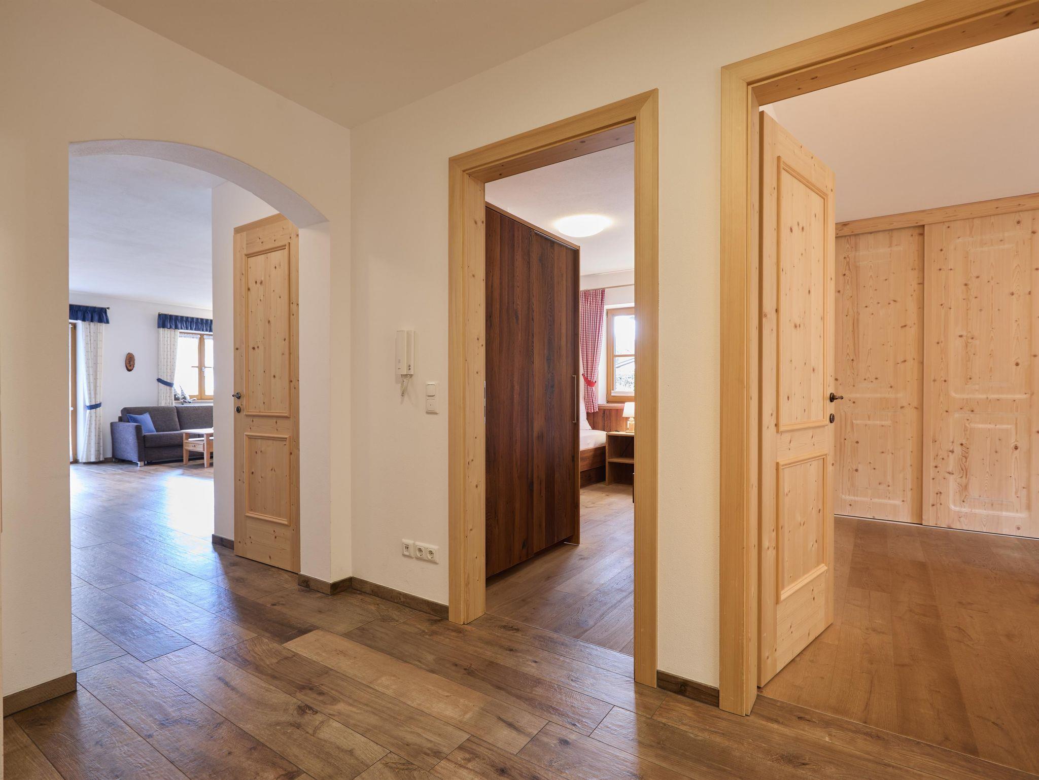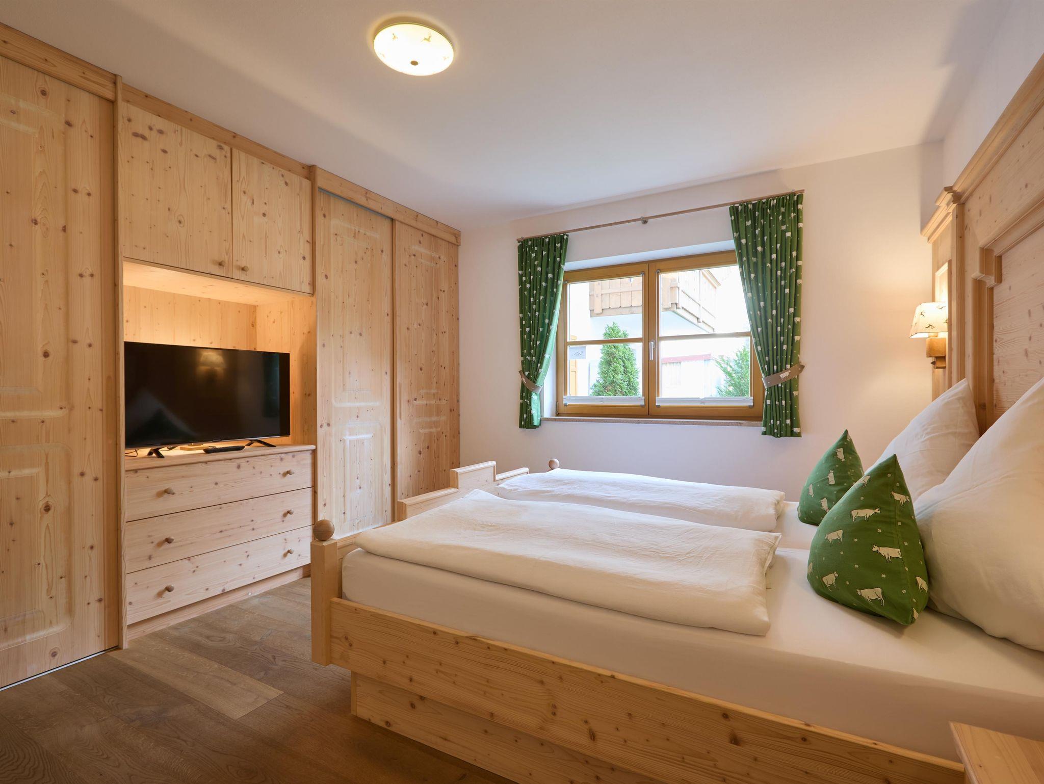 Großzügige Parterrewohnung mit maßgefertigten Schreinermöbeln und sonniger Terrasse. Wohnraum mit gemütlicher Couch/Schlafcouch, großem Smart-TV und Terrassenzugang. Komfortable, komplett ausgestattete Küchenzeile mit Esstisch und Eckbank. Zwei separate Schlafzimmer mit eigenem Smart-TV, Doppelbett oder zwei Einzelbetten. Ein freundliches Badezimmer mit großer, bodengleicher Walk-In Dusche, WC, Waschbecken und ein separates Gäste-WC mit Waschbecken.