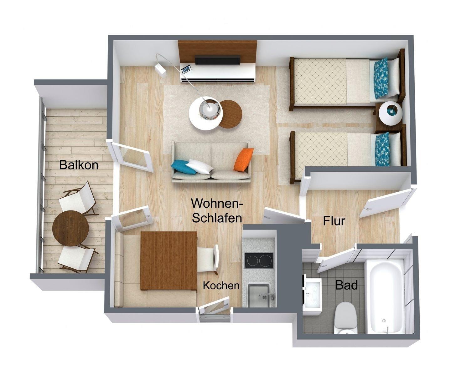 Gemütliches Einzimmer-Appartement (36qm) im Dachgeschoss mit Balkon.