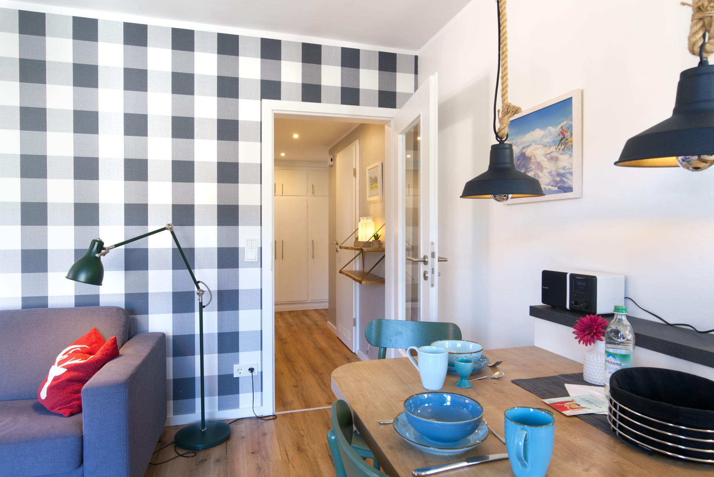 Die Ferienwohnung Melanie ist renoviert und neu ausgestattet und mit pfiffigen Details versehen. Im Wohnzimmer können Sie gemütliche Stunden am Elektrokamin verbringen. Die Küchennische ist großzügig mit Herd, Backofen und Spülmaschine ausgerüstet.
