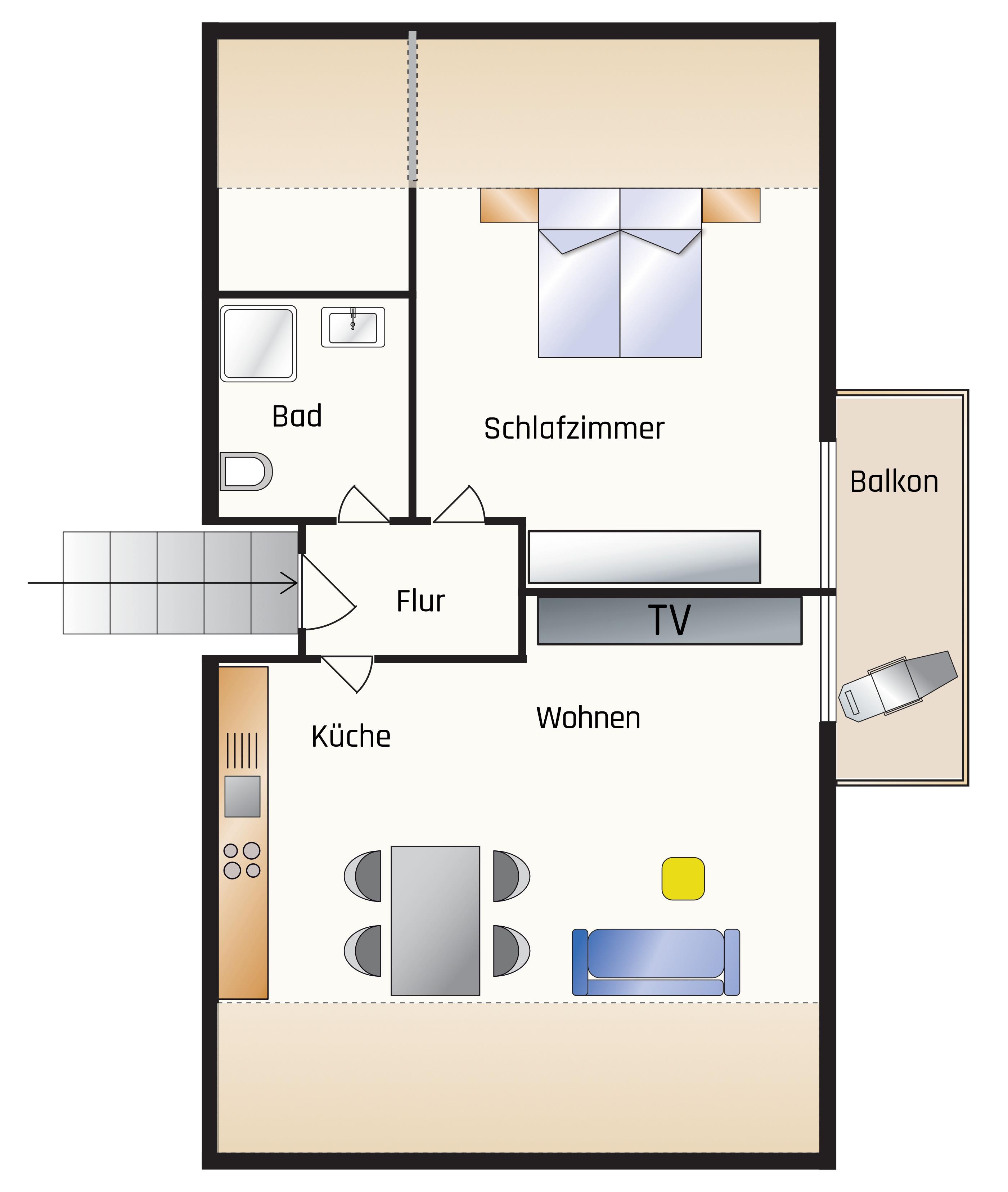 2 Zimmer-Wohnung (50 qm) im Dachgeschoss.