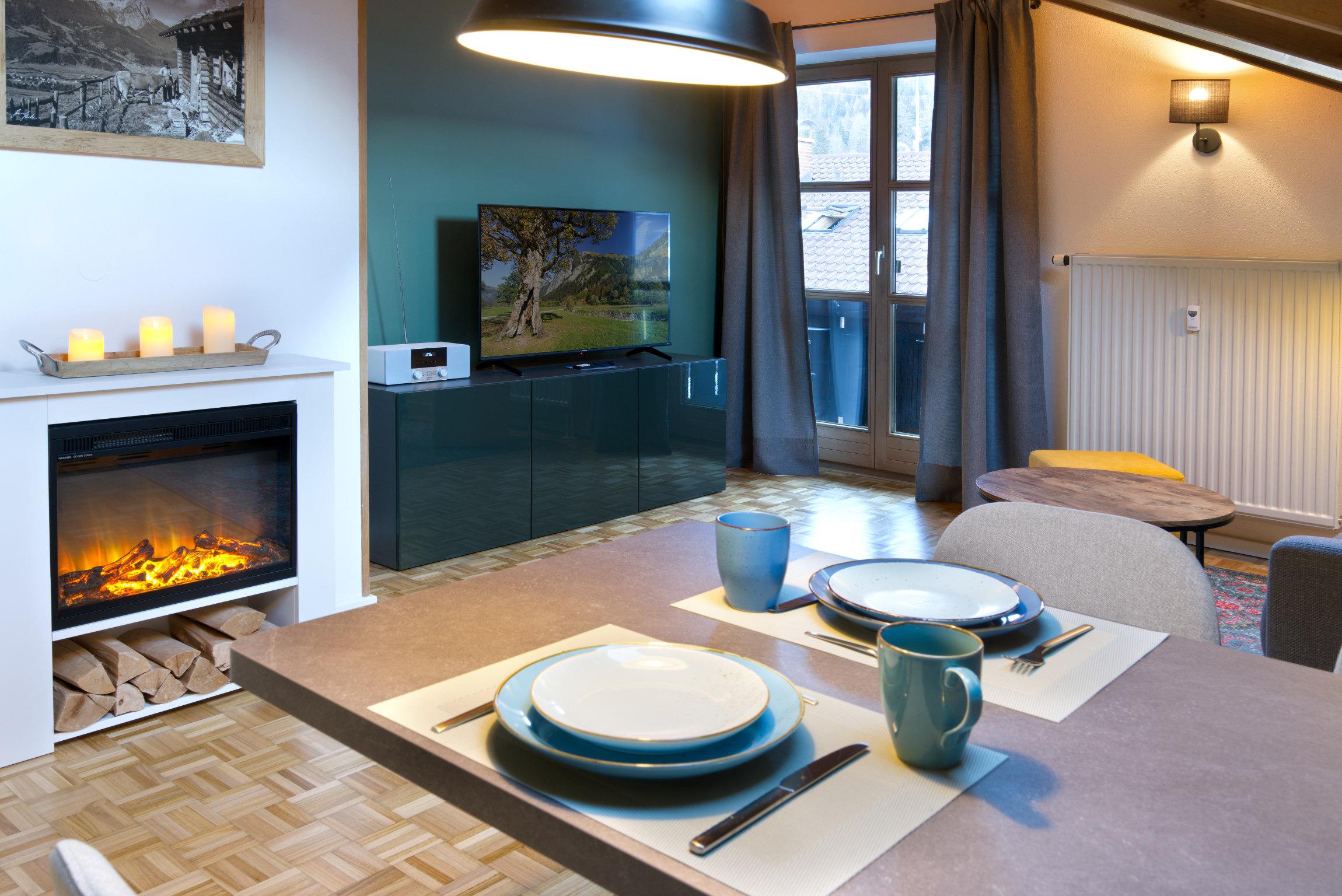 Die helle im alpinen Style ausgestattete 2-Zimmerwohnung "Traumkarwendel", ist umfassend renoviert und bietet mit dem Ostbalkon einen herrlichen Ausblick in Richtung Karwendelgebirge.