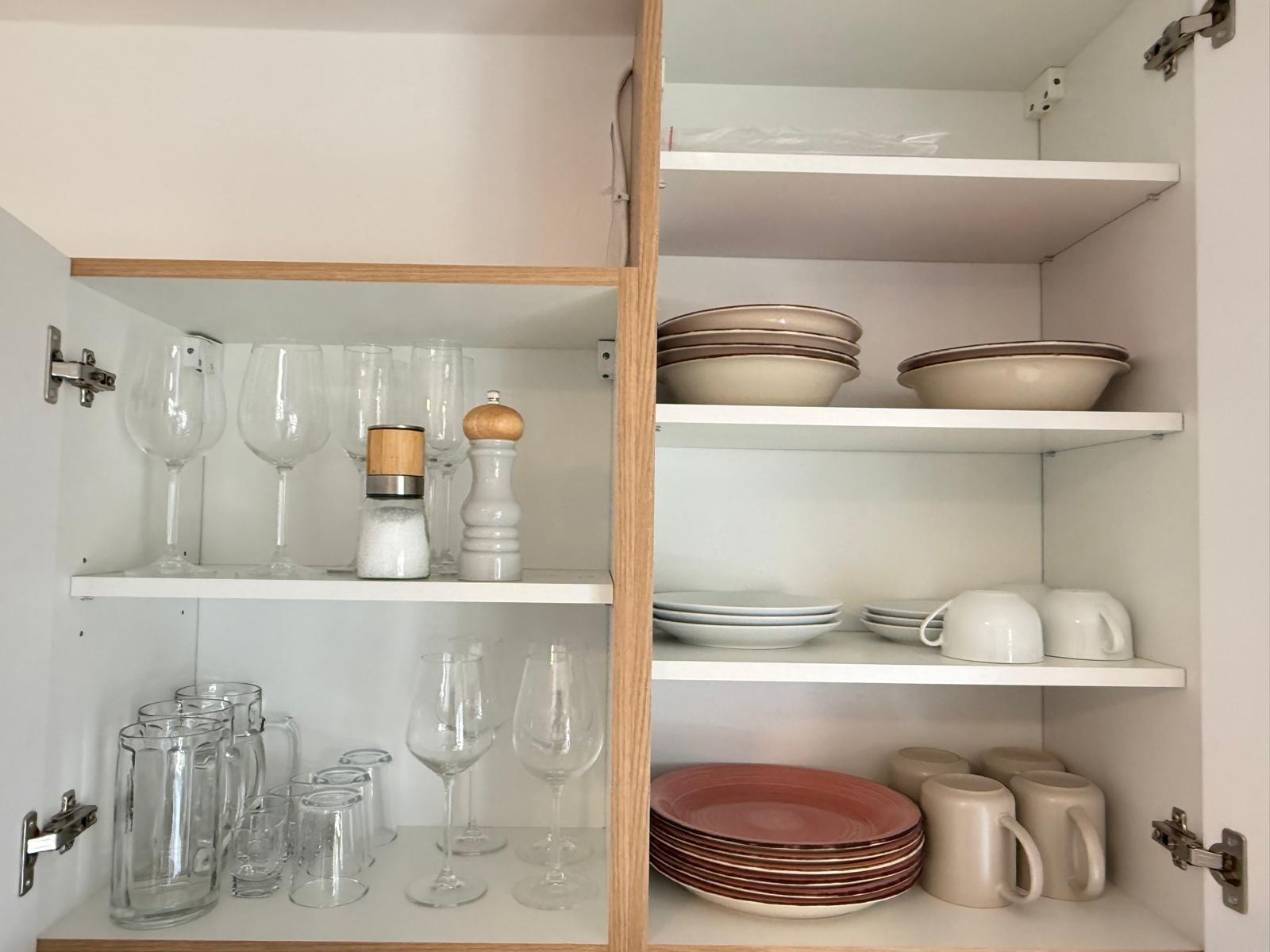 Das gemütliche Schlafzimmer lädt zu erholsamen Nächten ein, während das große Badezimmer mit moderner Dusche für frische Momente sorgt. Der offene Wohnraum vereint Küche, Ess- und Wohnbereich und schafft so eine helle und freundliche Umgebung, in der Sie sich sofort zuhause fühlen. Die Küche ist vollständig ausgestattet und bietet Ihnen alles, was Sie benötigen – statt eines klassischen Herds steht Ihnen ein moderner Minibackofen zur Verfügung, mit dem Sie genauso vielseitig braten, grillen und backen können wie mit einem herkömmlichen Backofen.