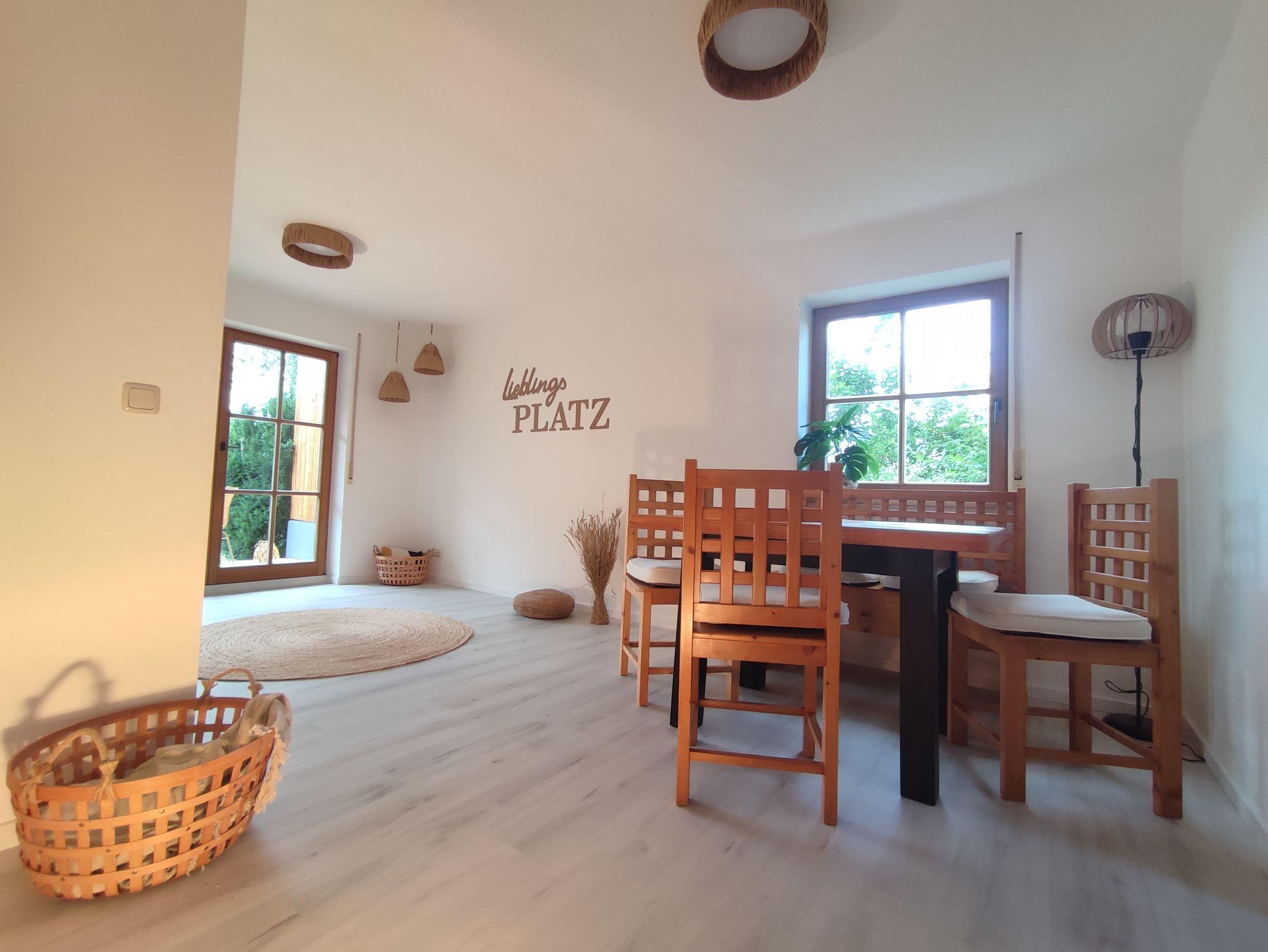 Willkommen in unserem liebevoll renovierten Ferienhaus Lieblingsplatz, Ihrem perfekten Rückzugsort in der kleinen historischen Stadt Monheim in Bayern. Monheim liegt mittig zwischen Nürnberg, Augsburg und Ingolstadt, verkehrsgünstig direkt an der B2. Der Naturpark Altmühltal, das Fränkische Seenland und das Ferienland Donau-Ries umgeben das kleine Städtchen. Unser Ferienhaus in der Monheimer Alb befindet sich nur wenige Kilometer vom Dreiländereck (Schwaben, Oberbayern, Mittelfranken) entfernt und eignet sich hervorragend als Startpunkt für unzählige Ausflüge, ausgedehnte Wanderungen, Nordic Walking sowie Fahrradtouren auf den zahlreichen gut ausgebauten Radwegen. Ebenso bietet Monheim im Sommer ein nostalgisches Freibad und in den Herbst- bzw Wintermonaten ein neues modernes Hallenbad mit Wellness- und Kinderbecken. Einkaufsmöglichkeiten, wie Supermärkte und ein Drogeriemarkt, sowie ein Imbiss, befinden sich in unmittelbarer Nähe und sind zu Fuß einfach erreichbar. Frische Brötchen und Brezen erhalten Sie auch sonntags, in der nebenliegenden Tankstelle oder in den 1km entfernten Bäckereien. Ebenso befinden sich im Ort ein Restaurant, Pizzerias und Bars sowie in den Sommermonaten ein gemütlicher Biergarten und eine Eisdiele.