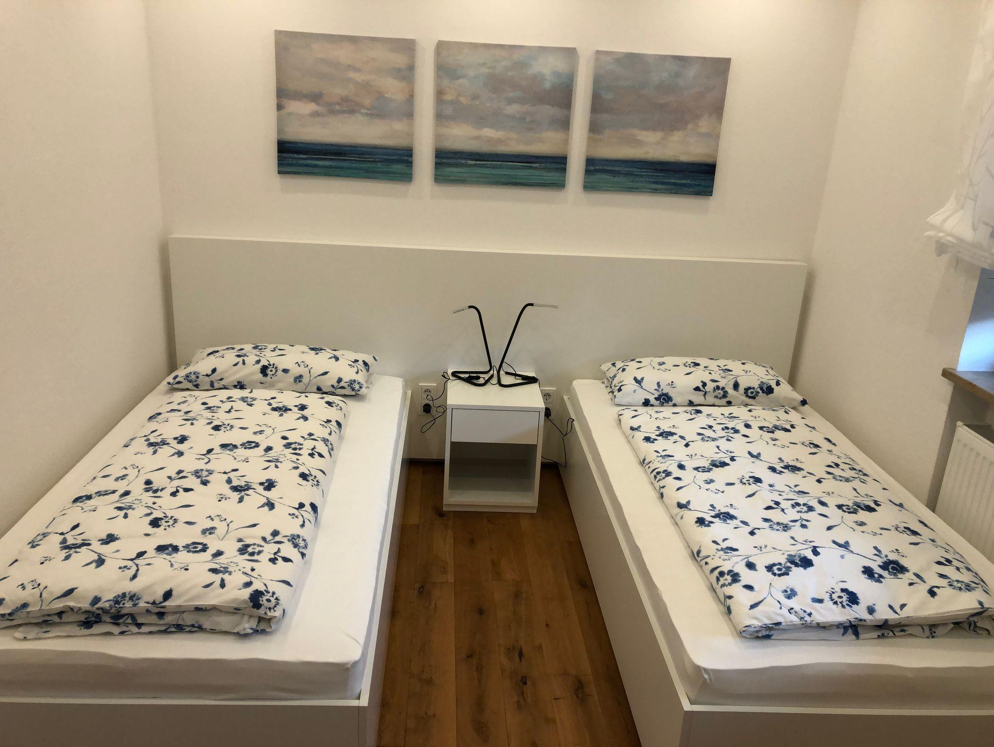 Schlafzimmer: zwei Einzelbetten, Smart-TV, Kleiderschrank