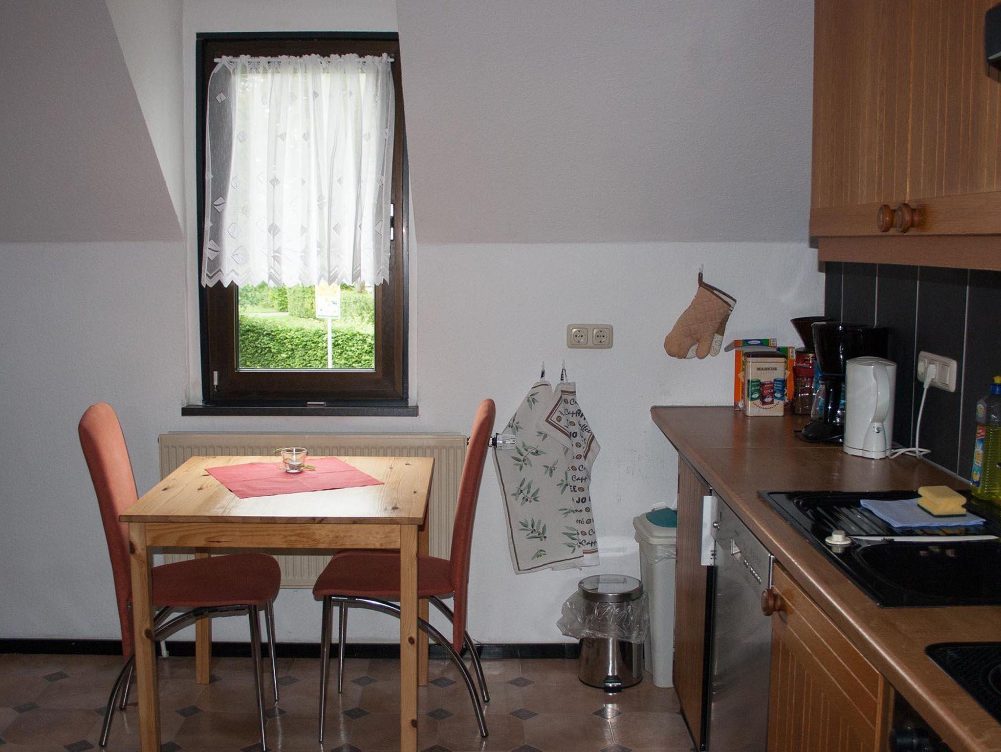 Die 55 m² große Ferienwohnung in einem typischen Eifeler Fachwerkhaus verfügt über eine komplett eingerichtete Küche mit Essecke, einem Schlafzimmer mit Doppelbett, einem Wohnraum mit Sitzecke und Sat-TV und einem geräumigen Bad mit Dusche.