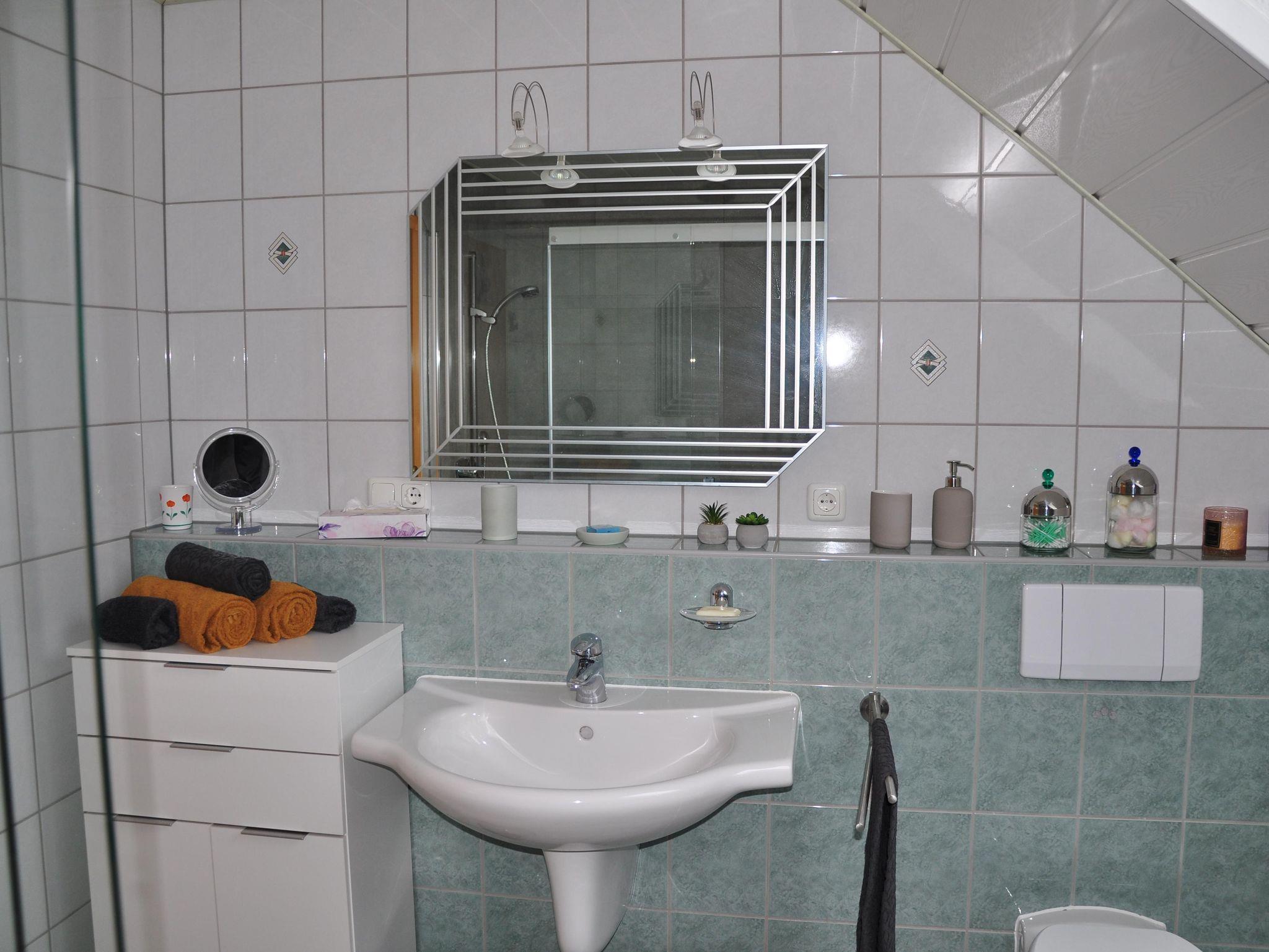 • Bad mit Dusche, WC und Waschbecken