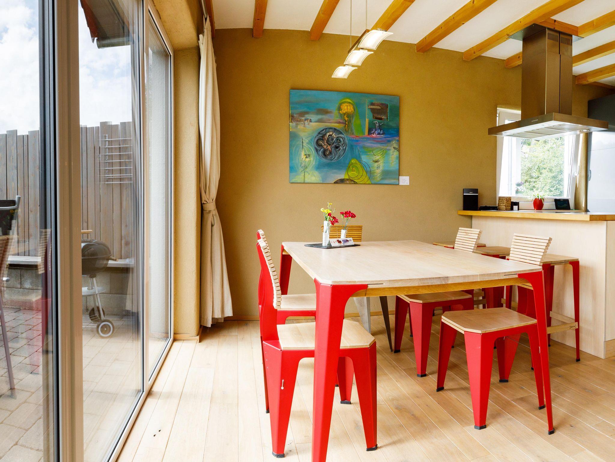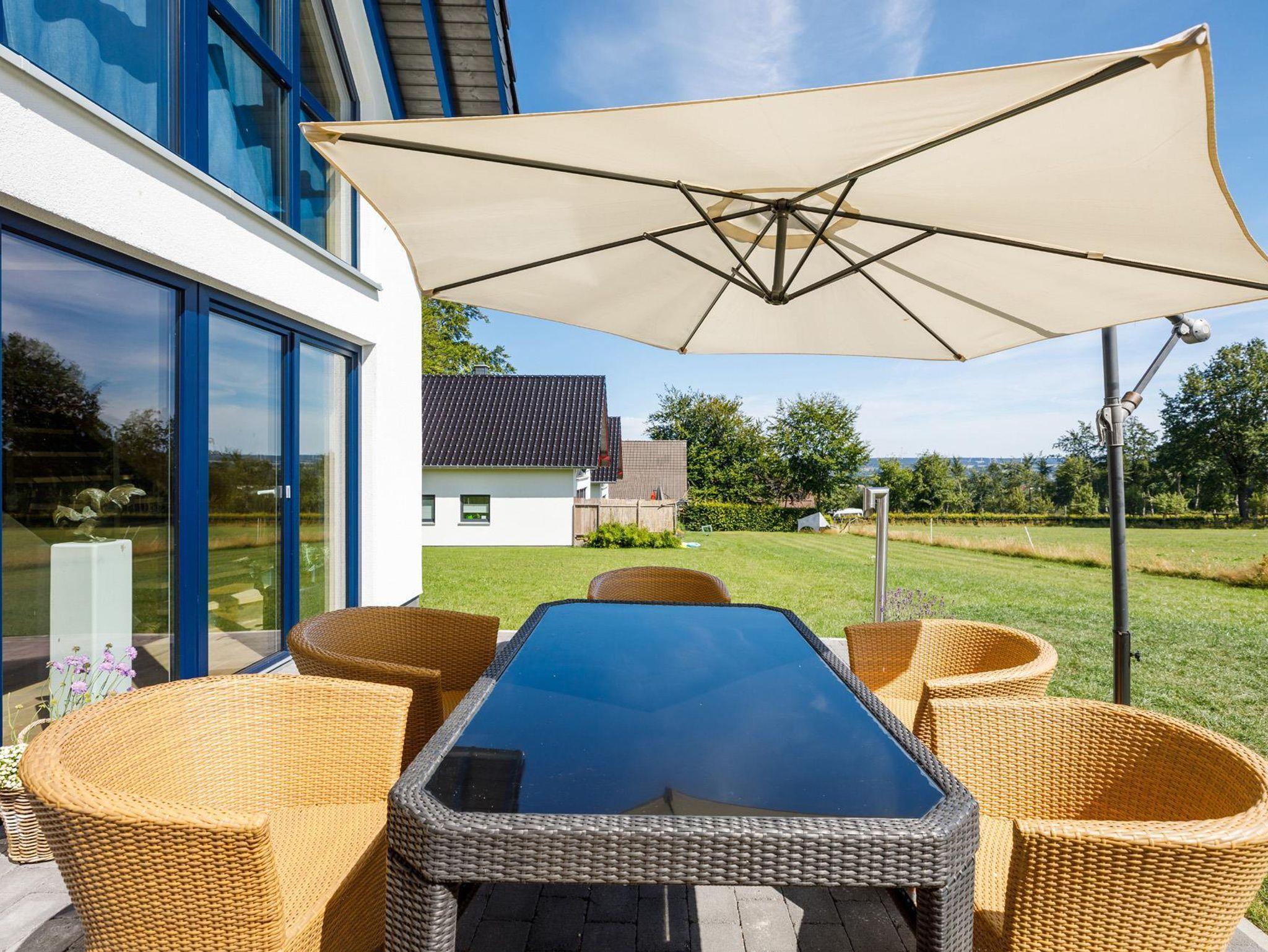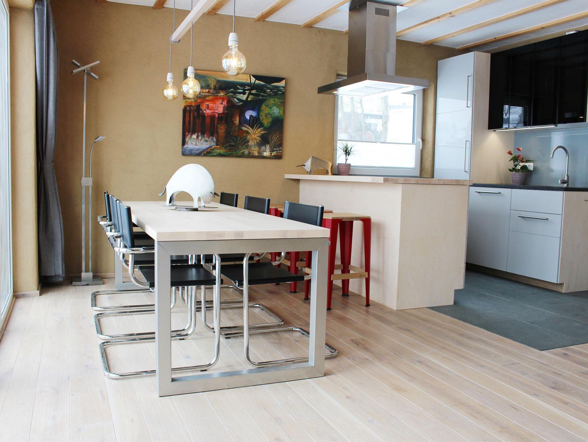Das Ferienhaus Blaues Haus besticht durch sein warmes Farbkonzept sowie seine effektvoll ausgerichteten Blickachsen in Richtung Monschau. Von der Architektur angefangen über die Einrichtung bis hin zu den Möbeln finden Sie nicht einfach Funktionalität auf hohem Niveau, sondern ebenso stilvoll zurückhaltende Kunstobjekte und Designerstücke (Bildhauer Klaus Gehlen / Dipl. Designer Didier Gehlen, welche das Wohn- und Urlaubserlebnis prägen.
