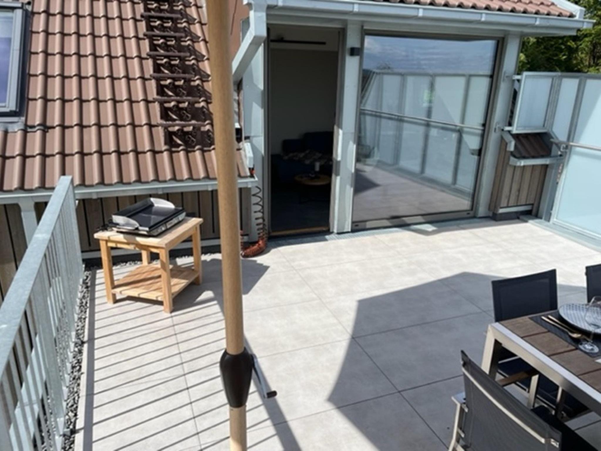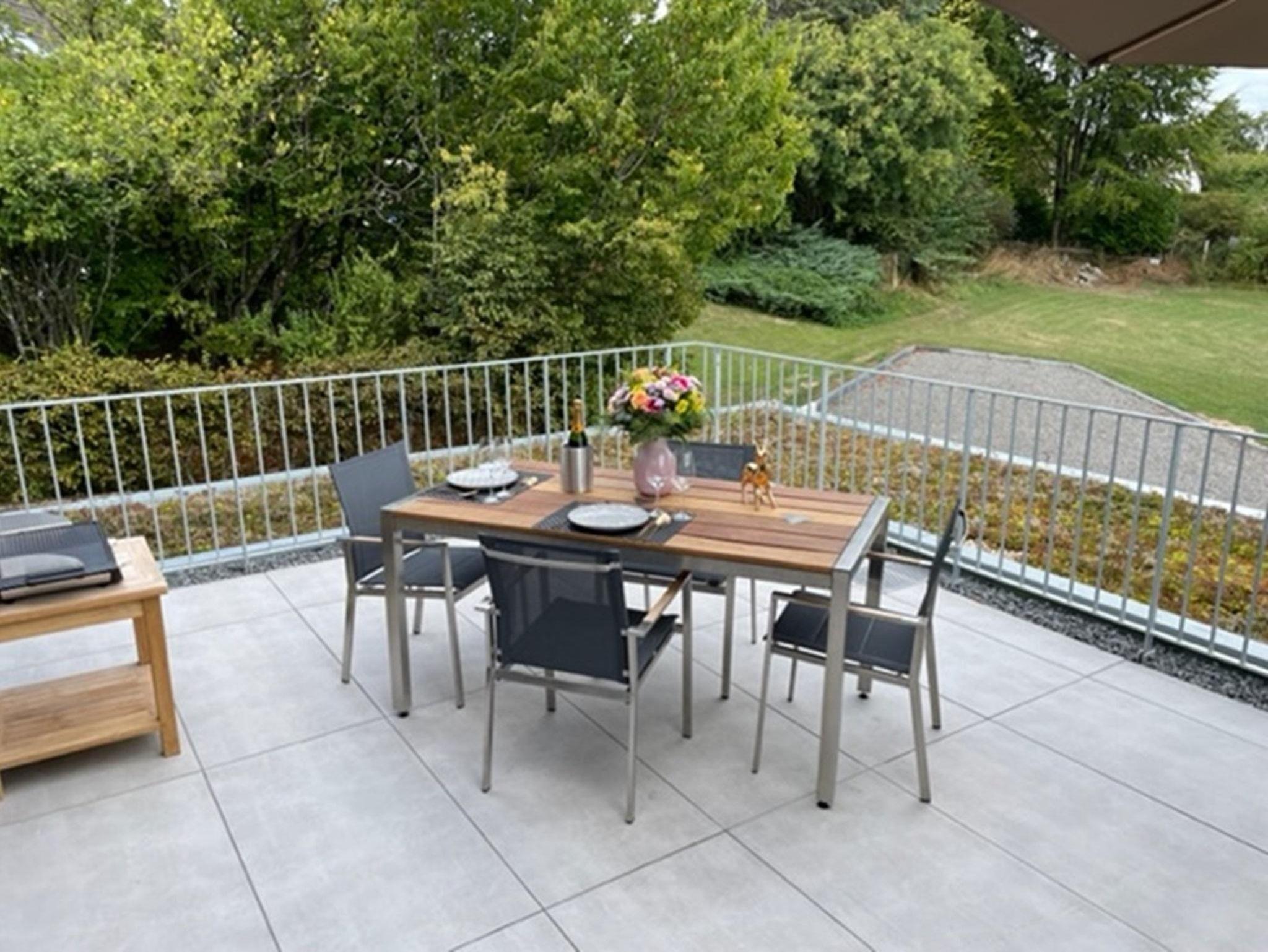 • Terrasse mit Gartenmöbeln und einem Elektro-Grill (OG)