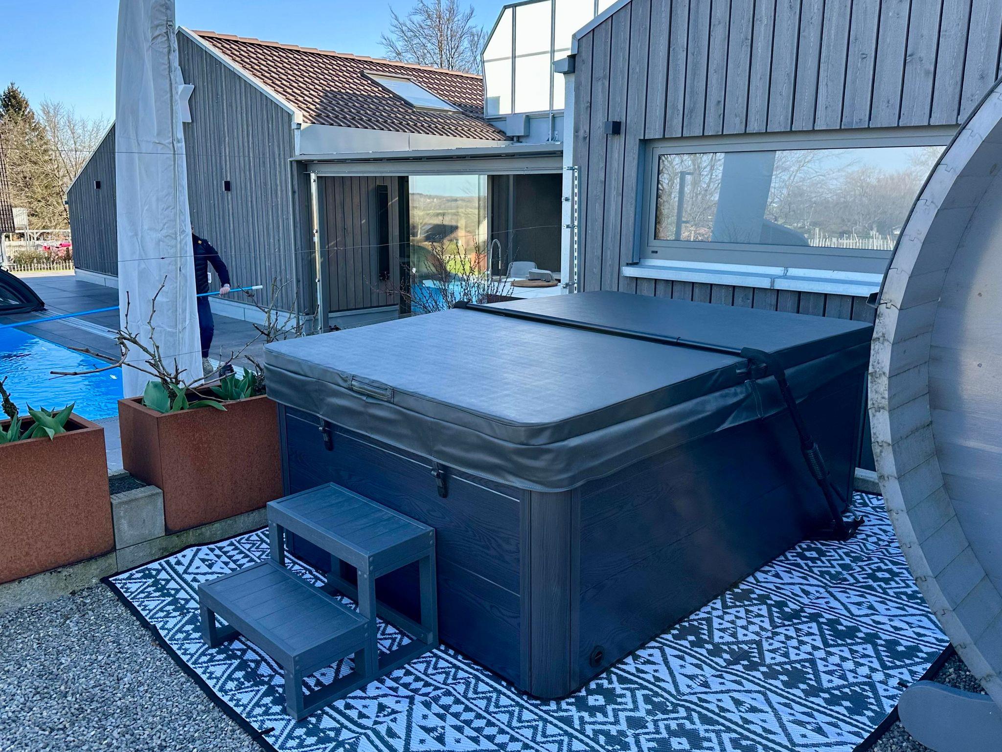 Sauna und Whirlpool im Außenbereich zur Gemeinschaftsnutzung. (Whirpool = Mai bis Oktober nutzbar)