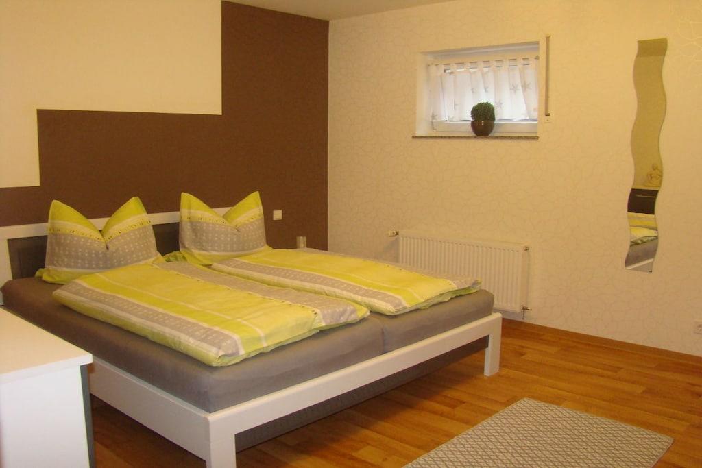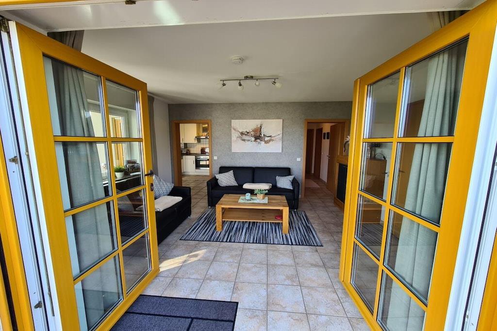 Unsere 54qm große, modern und komfortabel ausgestattete Ferienwohnung "Moseltor" ist bei unseren Stammgästen sehr beliebt. "Ruhe und eine tolle Aussicht sind unsere Stärken!" Alle Zimmer liegen auf einer Etage, sie ist ebenerdig zu erreichen und somit auch seniorenfreundlich. Abschließbare Unterstellmöglichkeit für Fahrräder etc. und ein großzügiger PKW - Stellplatz stehen zu Ihrer Verfügung. Eine z.T. überdachte Terrasse mit Grillmöglichkeit und Liegewiese mit Sonnenliegen sorgen für Entspannung nach ausgiebigen Wanderungen an frischer und gesunder Luft. Die ruhige Ortsrandlage mit herrlichem Ausblick in den Hunsrück sorgen für einen angenehmen und erholsamen Aufenthalt.