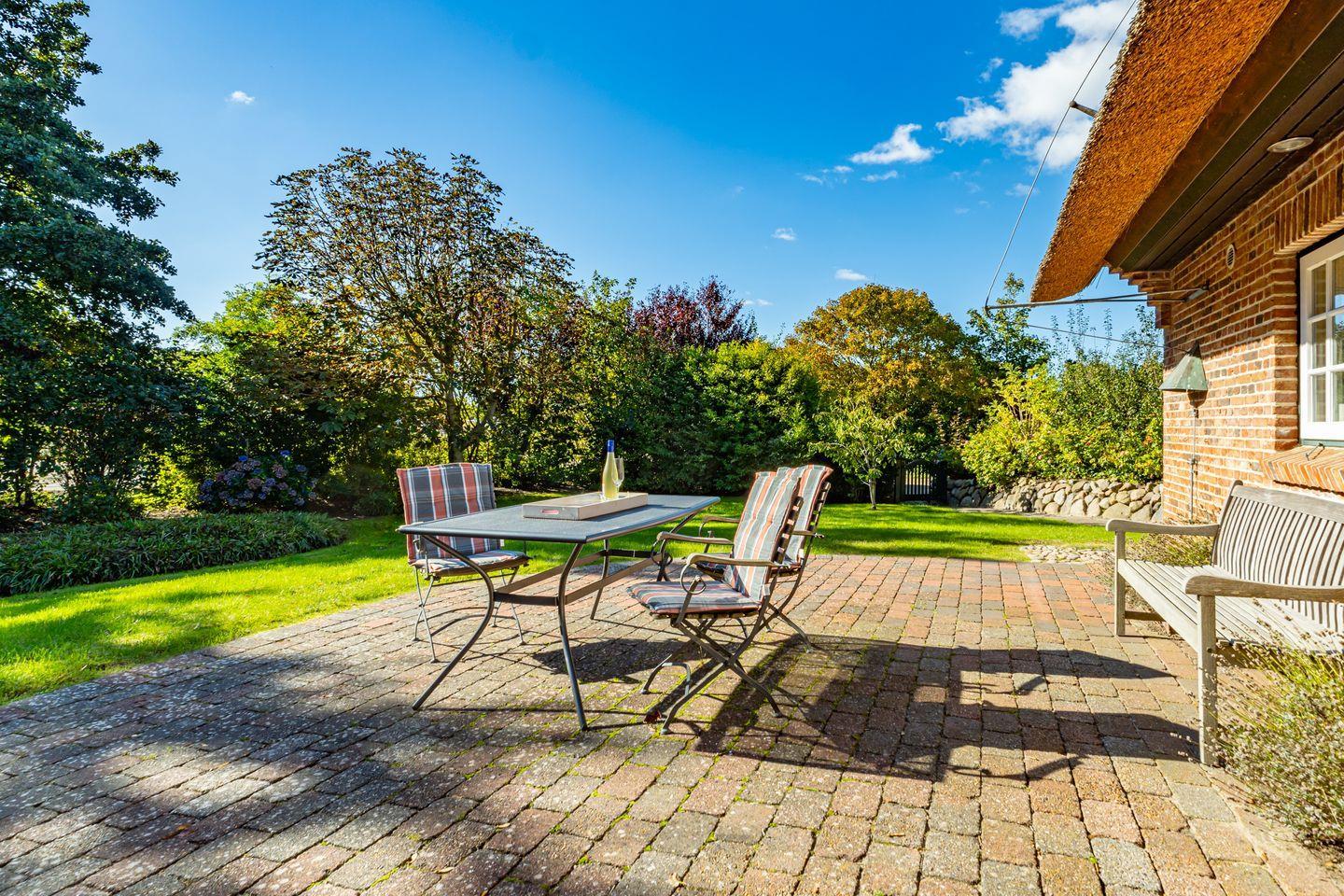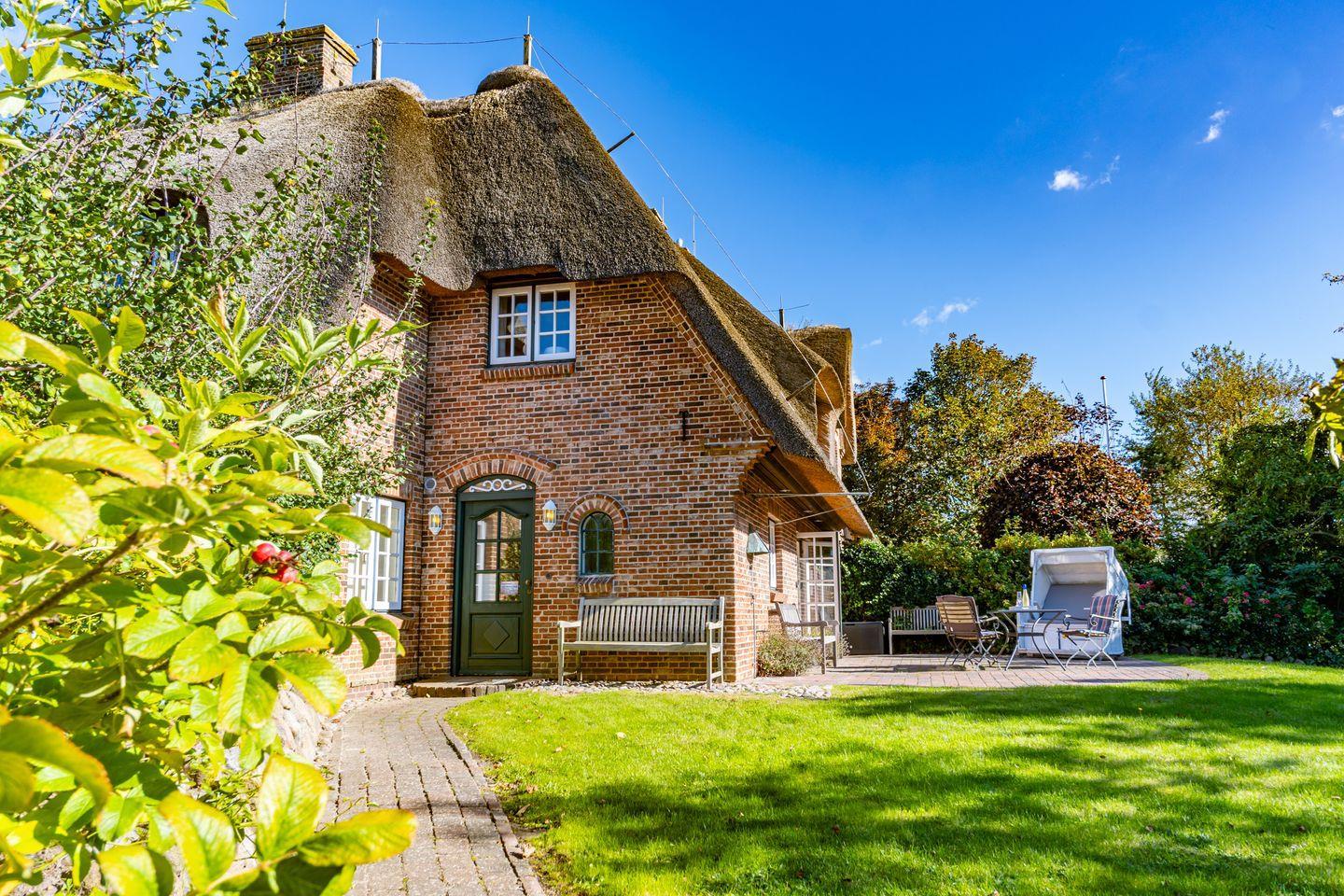 Gemütliches Reetdachhaus nahe dem Wattenmeer mit großem Garten und sonniger Südterrasse.