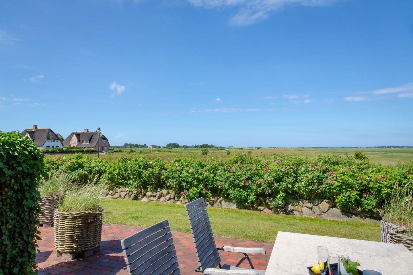 Sie können natürlich hier wohnen wegen der besonderen Lage. Ganz am Ende des Dorfes, sehr für sich, nur noch ein reetgedecktes Friesenhaus nebenan, mit großartigem Blick auf das weite Wattenmeer.