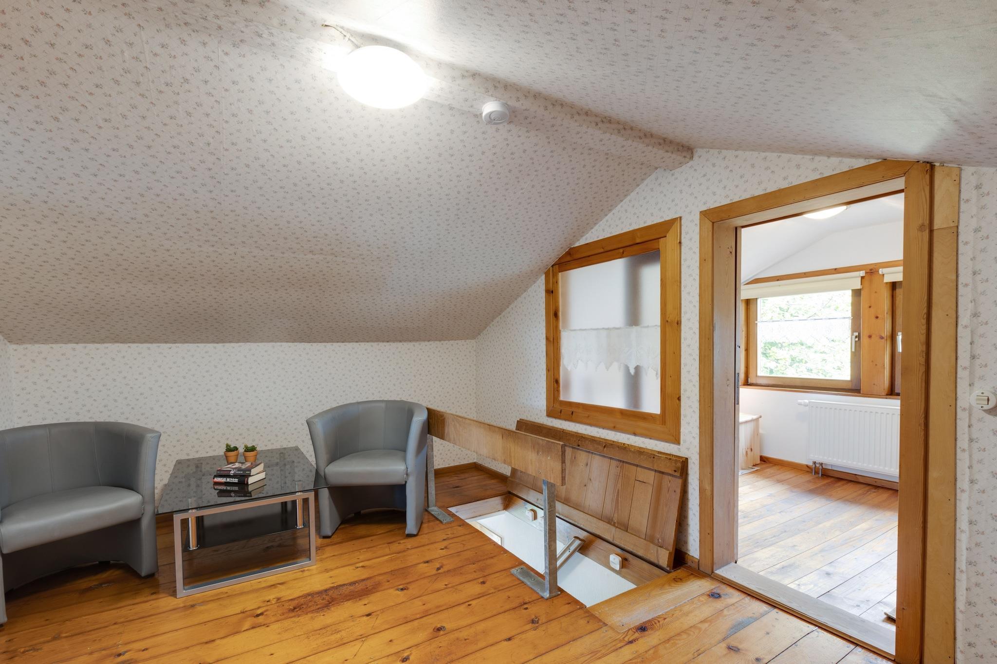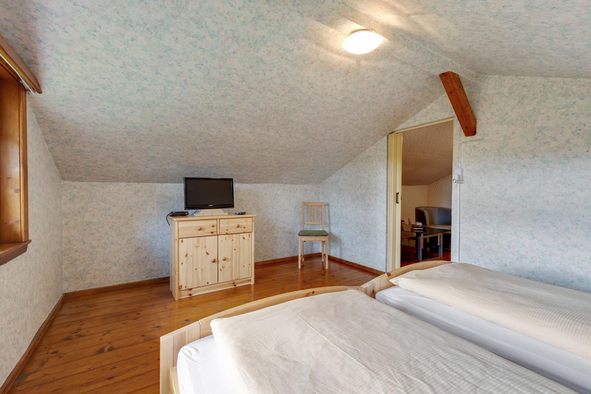 Parterre: (Eingang, Küche(Herd(Holz, Kachel), Toaster, Kochherd(4 Kochplatten, Ceranfeld), Kaffeemaschine(Filter, pads), Backofen, Kühlschrank), Wohn/Esszimmer(TV(Satellit), Herd(Holz, Kachel)), Badezimmer(Dusche, Waschbecken, Toilette), Abstellraum) Dachgeschoss: (Schlafzimmer(Doppelbett), Schlafzimmer(2x Einzelbett)) Heizung(Zentral, Öl), Terrasse(alleinige Nutzung, 15 m2), Garten(alleinige Nutzung, umzäunt, 2500 m2), Gartenmöbel, Grill(Holzkohle), Parkplatz, Liegestühle
