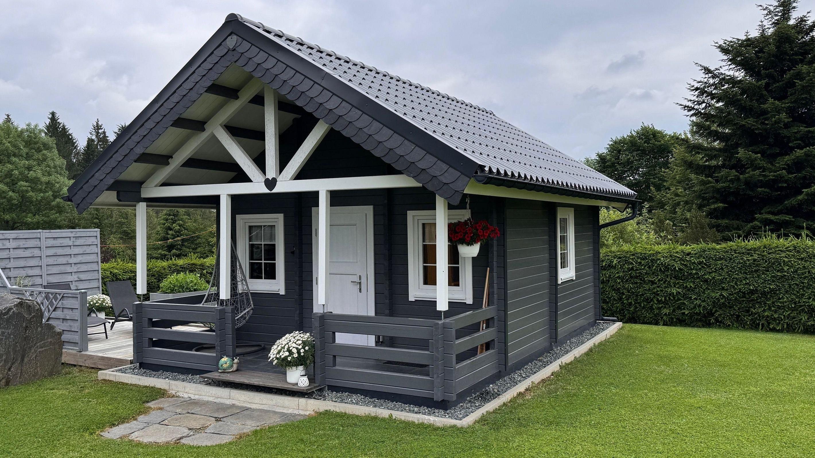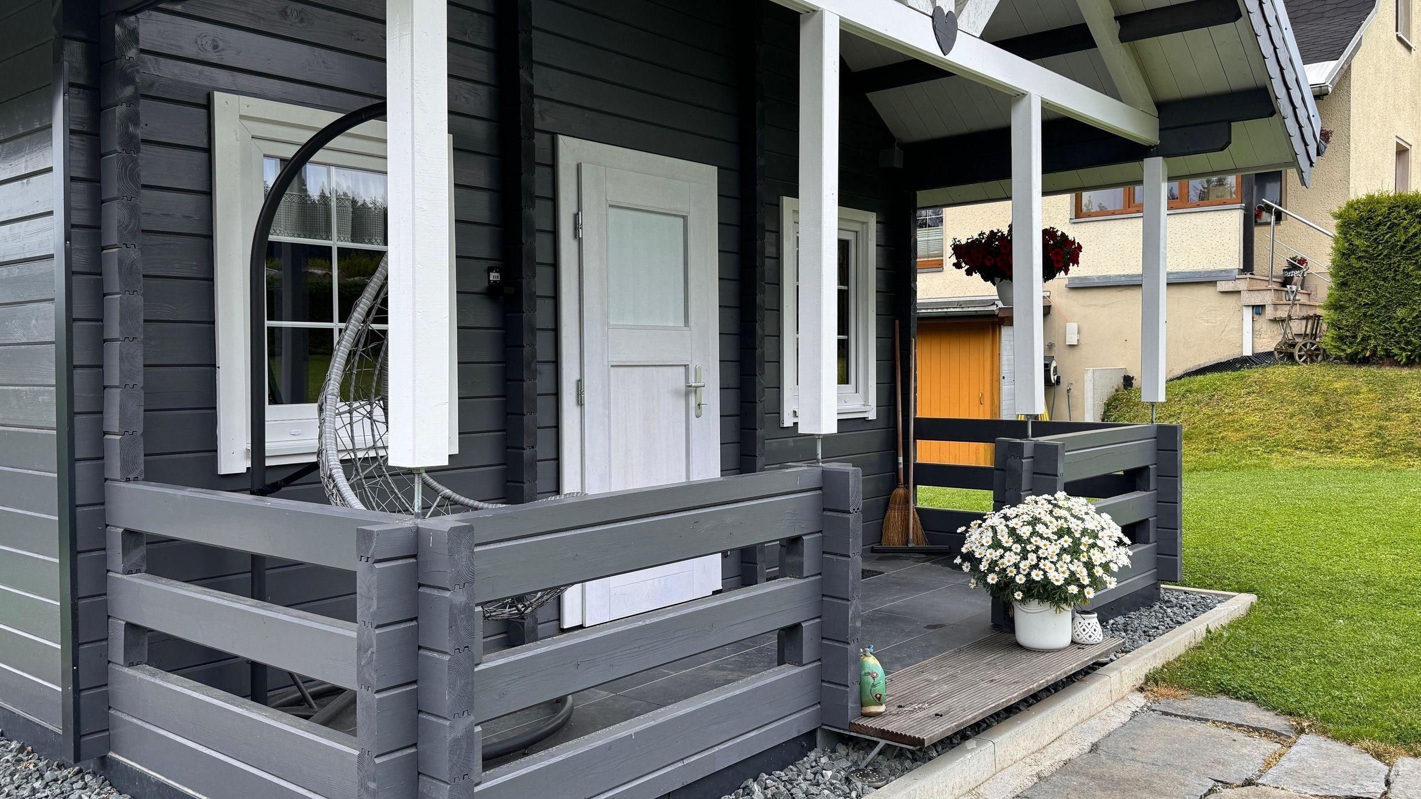 Unser Häuschen bietet eine Terrasse mit Hängstuhl zum entspannen oder lesen und eine Sitzecke für gemütliche Abende am Grill, den wir zur Verfügung stellen.
