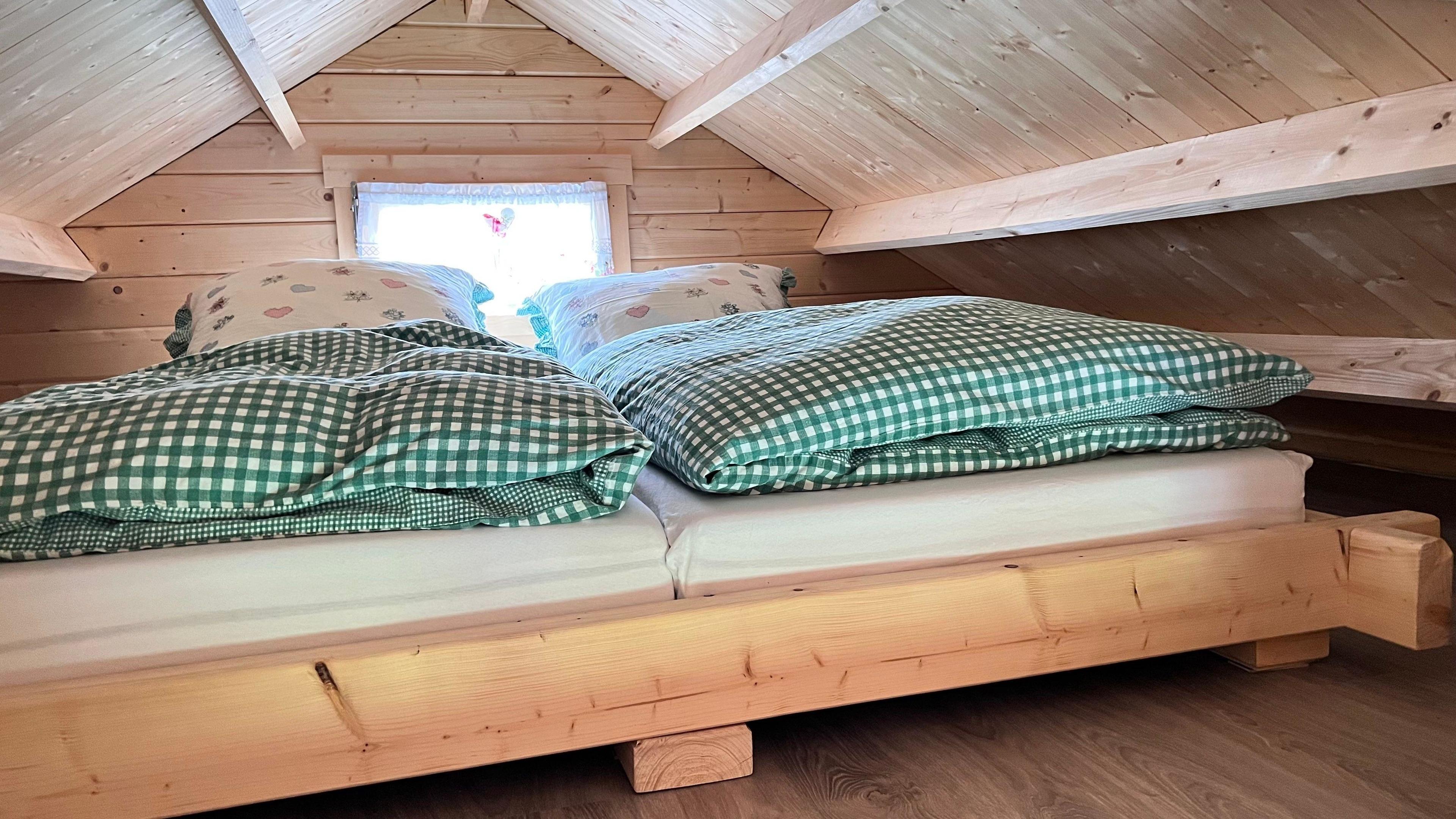 Ausstattung: Schlafboden mit zwei Betten (Bettwäsche inklusive)