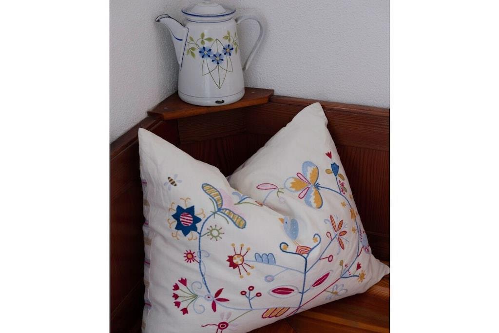 Die Ferienwohnung liegt im Erdgeschoss eines 2-Familienhauses und ist eine gepflegte Wohnung, die liebevoll eingerichtet ist. Zahlreiche antike "Schätzchen" schaffen Atmosphäre. Die hochwertige, weiße Küche ist mit einer gemütlichen Eckbank und jeglichem Komfort versehen. Das weiße Schlafzimmer ist mit Doppelbett 2,00 x 1,80 und guten Matratzen, einem großen Kleiderschrank und antikem Kinderbett, Kinderhochstuhl vorhanden Das Bad hat eine Dusche und einen großen Waschtisch, das WC ist separat. Das Wohnzimmer ist gemütlich mit Sitzgruppe, Kachelofen, SAT TV und Radio ausgestattet. Ein weiteres Wohn-Schlafzimmer für den 3. Gast oder getrenntes Schlafen ist vorhanden.