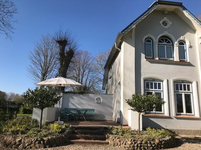 Stilvolle Ferienwohnung "Parkwohnung" nahe Schlei & Langsee – ideal für Familienurlaub mit Hund, mit großer Terrasse, Kachelofen, 2 Bädern, Spiel- & Arbeitsbereich sowie Garten- und Fahrradnutzung.