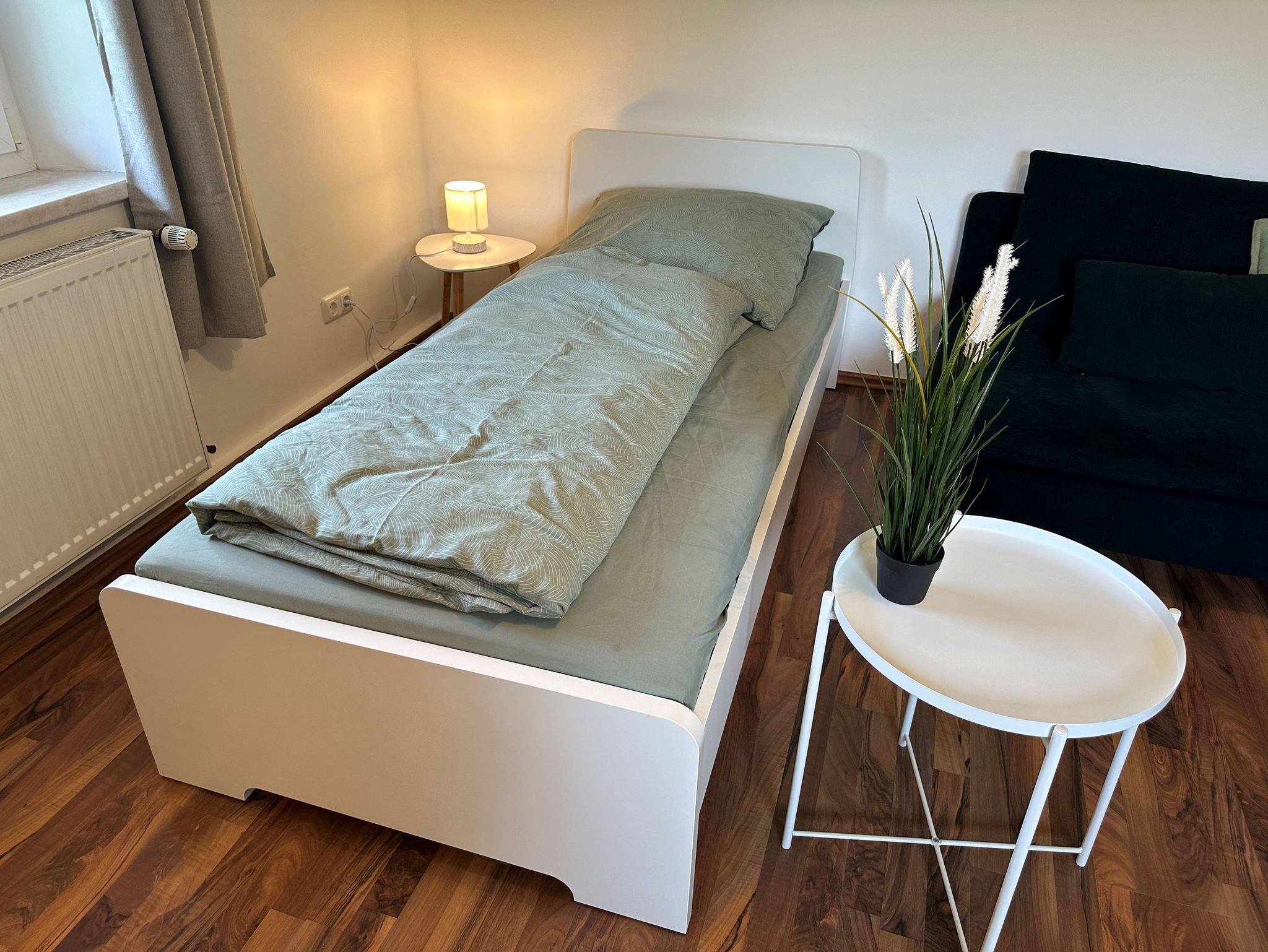 Die Wohnung verfügt über zwei einladende Zimmer mit jeweils 2 Einzelbetten; Bettwäsche und Handtücher sind selbstverständlich inklusive. Die vorhandene Einbauküche bietet alles für den täglichen Gebrauch: Kühlschrank, Backofen, Kaffeemaschine, Milchaufschäumer, Wasserkocher, Mikrowelle und einen kl. Geschirrspüler. Zur Unterhaltung gibt es einen großen Fernseher und WLAN mit Flatrate inklusive. Für ihr Fahrzeug (auch bis Transportergröße) finden Sie auf einem der frei zur Verfügung stehenden Stellplätze stets einen Parkplatz direkt vor der Haustüre.