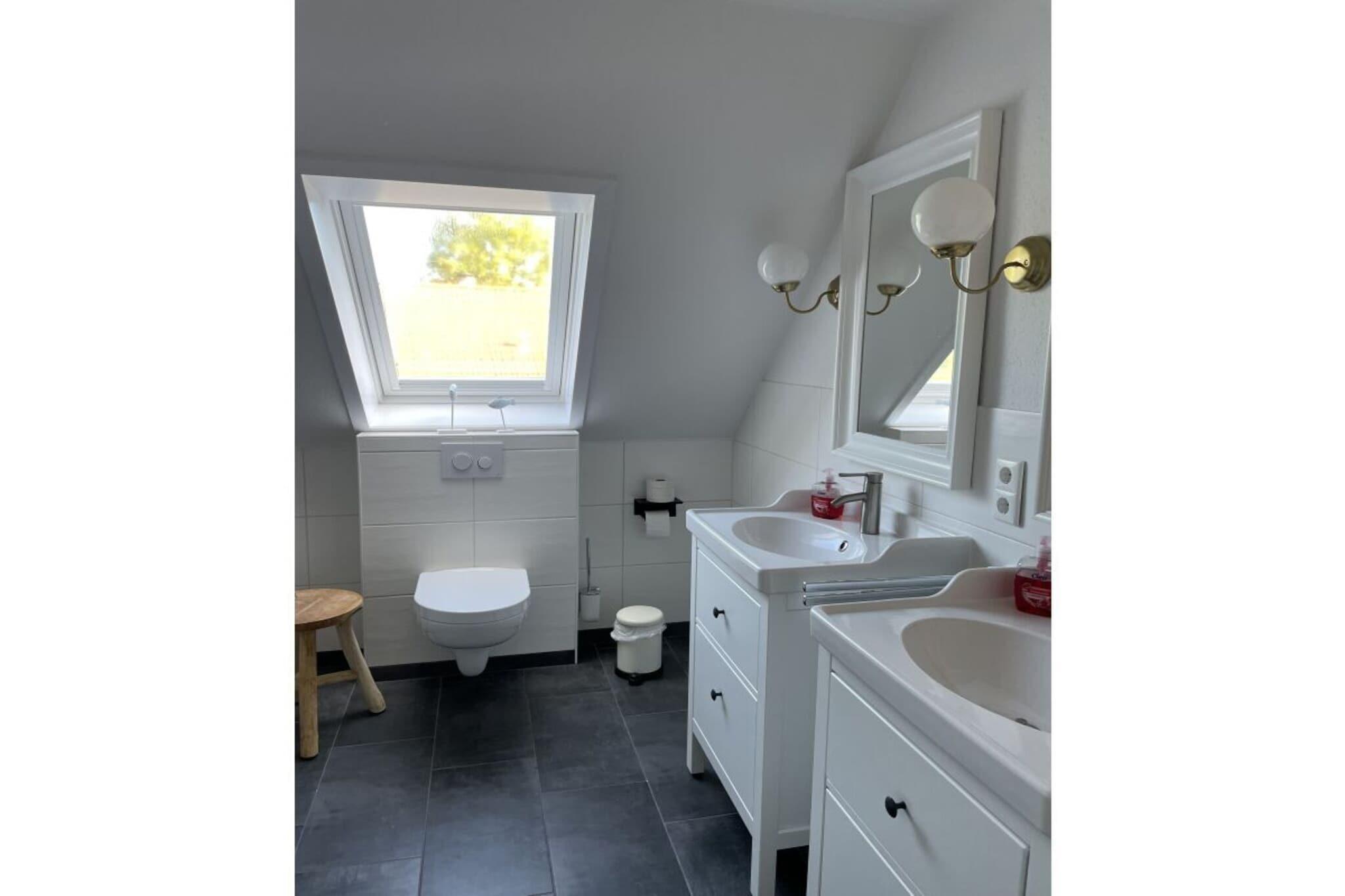 Wir bieten Ihnen auf einer Wohnfläche von ca. 135 qm ein schönes Ferienhaus, das mit hellen Farben und nordischen Möbeln im maritimen Stil zu einem erholsamen Urlaub einlädt. Auf zwei Etagen finden Sie viel Platz für insgesamt 6 Personen und ein Baby / Kleinkind. Im Erdgeschoss befindet sich ein geräumiger Flur, eine separate großzügige Landhausküche mit direktem Zugang zur Terrasse und zwei große, hell eingerichtete Wohnräume sowie ein Gäste-WC. Das Obergeschoss verfügt über 3 Schlafzimmer, ein neues großes Badzimmer mit Badewanne und begehbarer Dusche, WC und zwei Waschbecken. Das zweite Badezimmer ist mit einer Dusche und WC ausgestattet. WLAN ist kostenlos zu nutzen. Zwei Smart-TV stehen Ihnen zur Verfügung. Es sind insgesamt zwei Gästeparkplätze vorhanden. Haustiere sind willkommen.