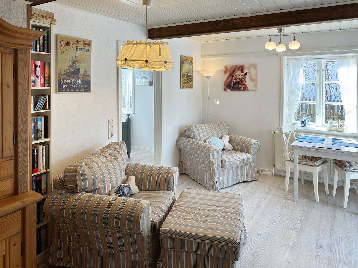 Gemütliche Ferienwohnung Aawerkant in Nebel, nur 800 m vom Sandstrand, mit moderner Ausstattung und Gemeinschaftsterrasse.