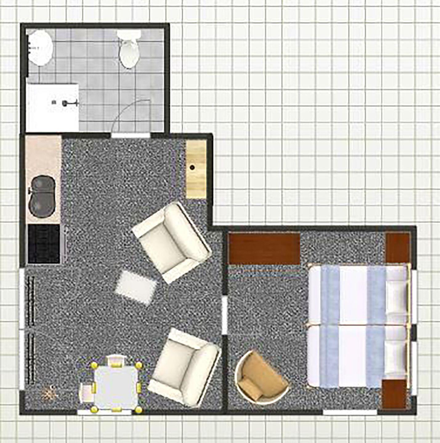 Die 40 m² große Unterkunft verfügt über ein einladendes Schlafzimmer und ein Badezimmer mit Dusche. Das offene Wohnkonzept verbindet das Wohnzimmer mit der vollausgestatteten Küche, die über einen 3-Platten-Herd, Kühlschrank, Geschirrspüler, Kaffeemaschine und alle wichtigen Küchenutensilien verfügt. Hier können Sie in aller Ruhe Ihre Mahlzeiten zubereiten und genießen. Der Essbereich mit einem schönen Esstisch und die Sofaecke laden zu gemütlichen Abenden ein.