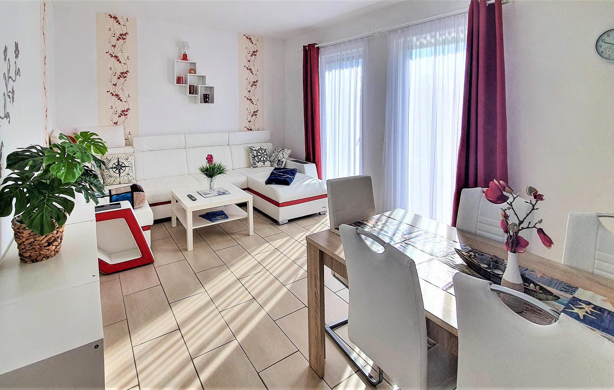 Moderne Ferienwohnung in Neppermin, nur 500 m vom Achterwasser, mit Terrasse, WLAN und Gemeinschaftspool.