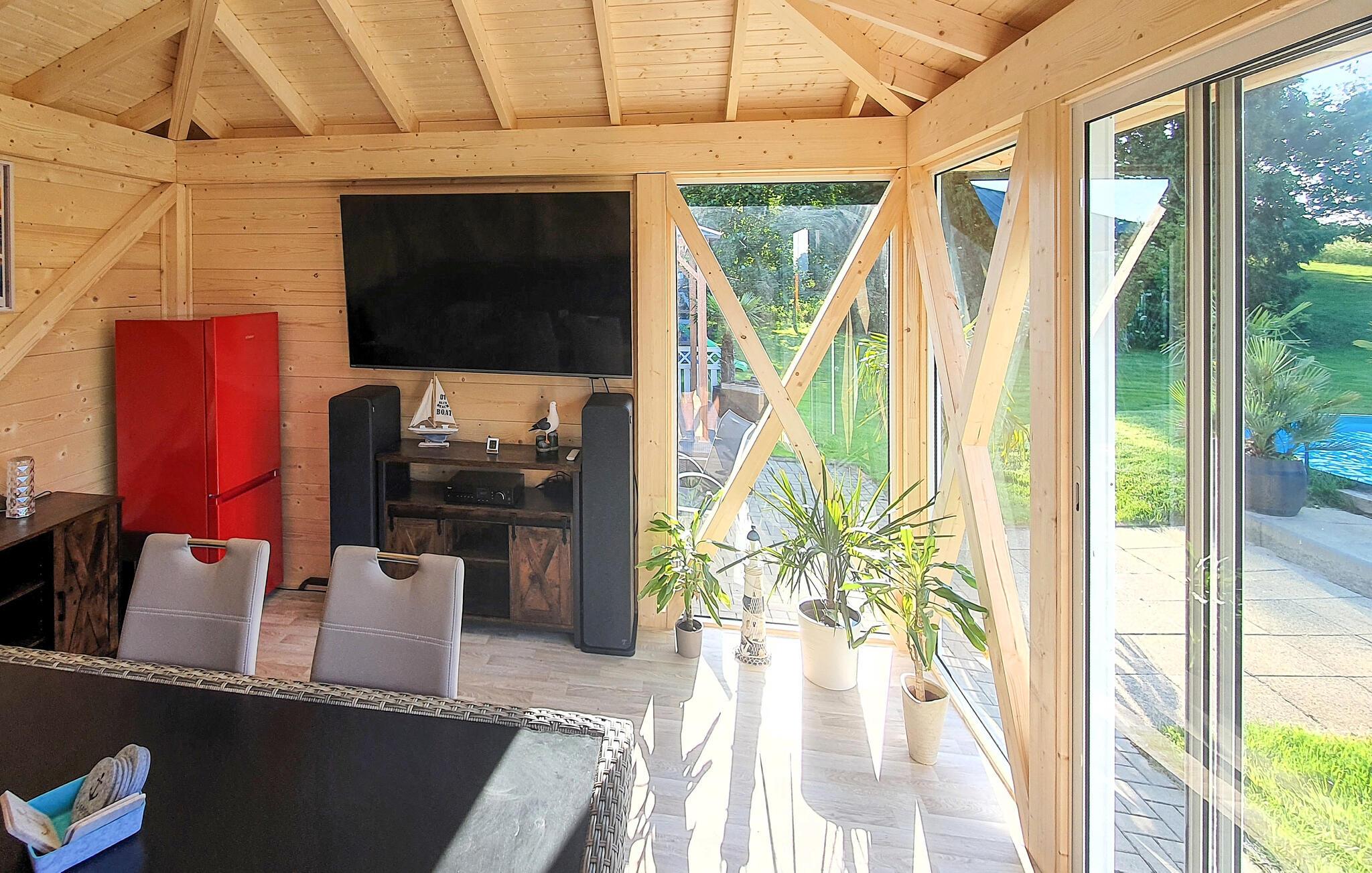 Moderne Ferienwohnung in Neppermin mit Kamin, Pool und WLAN, nur 500 m vom Achterwasser entfernt.
