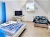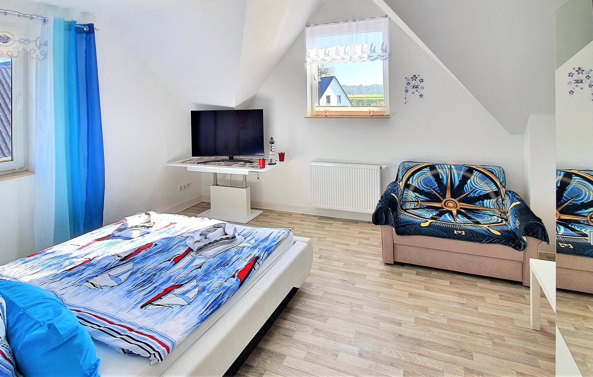 Die komfortabel und modern eingerichtete Ferienwohnung wurde 2014 neu gebaut und ausgestattet. Die Ferienwohnung für 2-5 Personen liegt im 1. Stock eines Ferienhauses, nur ca. 500 m vom Achterwasser (Nepperminer See) entfernt. Dort gibt es auch ein Kamin im Wohnzimmer. Das Ostseebad Bansin ist ca. 8 km entfernt. Die Ferienwohnung verfügt über ein Wohnzimmer (Polstermöbel mit Schlaffunktion, Flachbild-TV, Radio/CD, Esstisch, teilweise mit ein Kamin), Schlafzimmer (Doppelbett, Flachbildfernseher), Kochnische (E-Herd, Kühlschrank mit Gefrierfach, Minibackofen, diverse Küchengeräte), Dusche/WC, Zentralheizung, WLAN. Ein Kinderbett und ein Hochstuhl können zur Verfügung gestellt werden. Es gibt einen möblierten Außenbereich, einen Außenpool (nicht beheizt), einen Grillplatz, ein Trampolin und einen Parkplatz.
