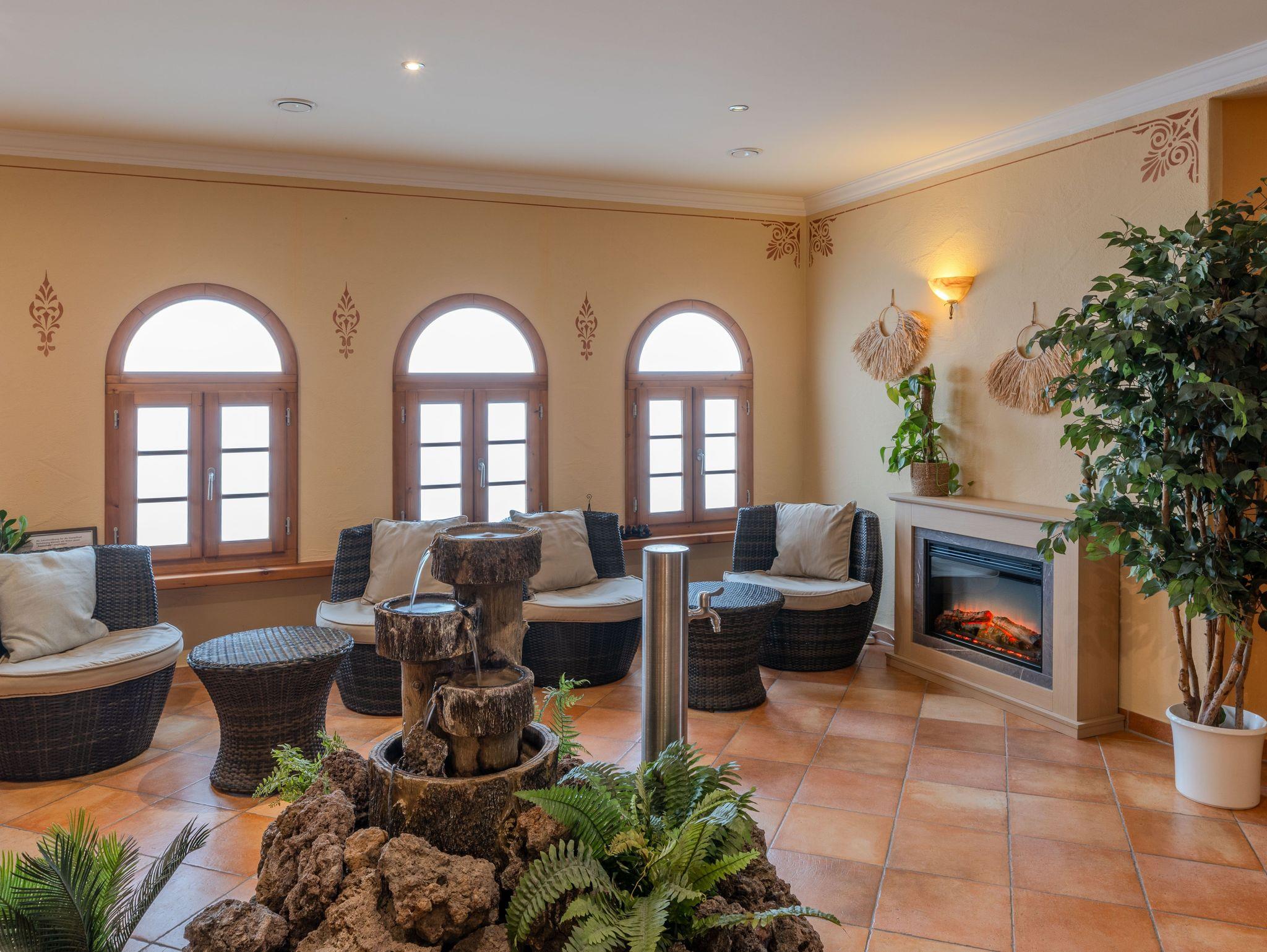 Unser Wellnessbereich bietet bei jeder Wetterlage die Nutzung einer klassischen Sauna, ein Dampfbad und ein Ruheraum sowie einer Salzgrotte und einem Salionarium. Zusätzlich bieten wir auch ayurvedische Massage an.