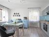 Wohn-/Esszimmer mit integrierter Küche, Couch, TV, Essbereich