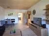 Wohn-/Esszimmer mit gemütlicher Couch, TV, Essbereich und Balkonzugang