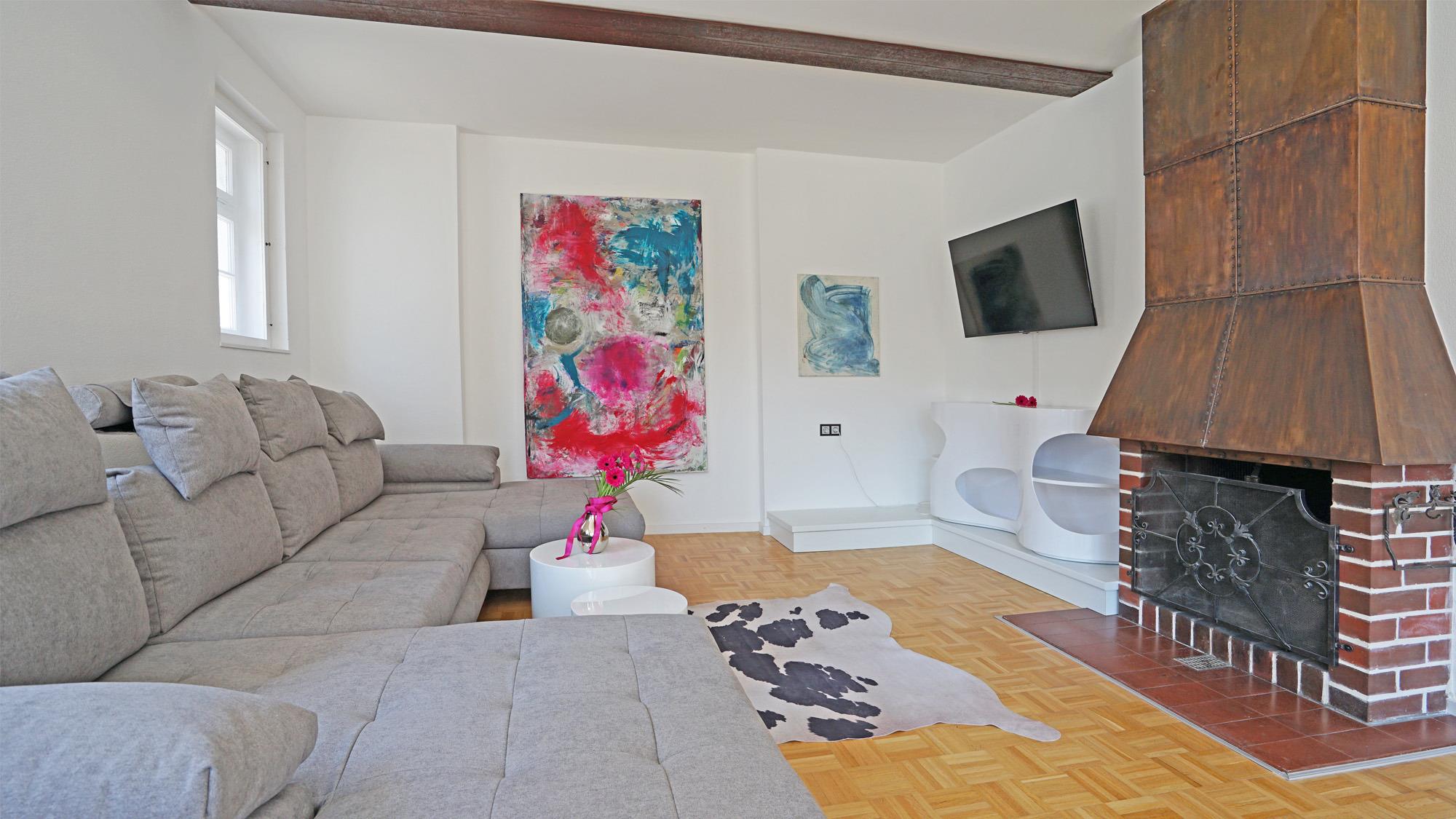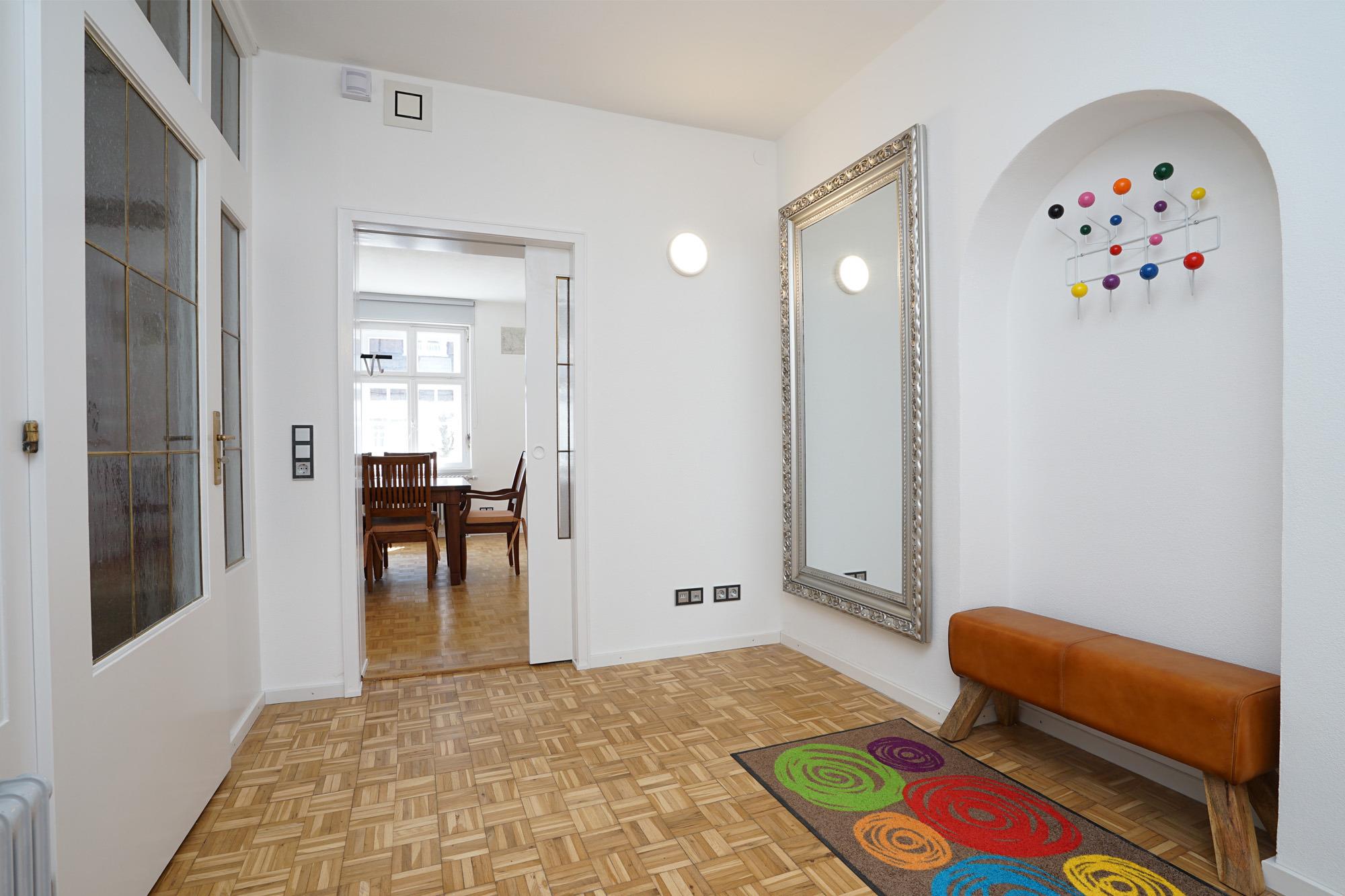 Die "Villa Primavera" strahlt auf ca. 180 m² in erfrischenden Frühlingsfarben und im modernen Zeitgeist. Das hochwertig renovierte und sehr geschmackvoll ausgestattete Haus im Villenstil ist ideal für 4-8 Personen. Das Haus verfügt über 4 Schlafzimmer, alle mit Doppelbett und TV, 2 großzügige Duschbäder (1 EG+1 OG), eine komplett ausgestattete Küche mit Essplatz, einem zusätzlichen Esszimmer und einem geschmackvoll eingerichteten Wohnzimmer mit Leseecke und Kamin (Deko) und einem TV, WLAN und SAT vorhanden. Eine herrliche Sonnenterrasse mit Loungebereich zum Relaxen, begehbar über das OG, genießen Sie den Logenplatz bei Aperol-Spritz. Für Fahrräder steht eine Fahrradgarage mit Stromanschluss im Außenbereich zur Verfügung sowie 3 PKW-Stellplätze und eine Wallbox am Haus. Weitere freie Stellplätze befinden sich direkt gegenüber.