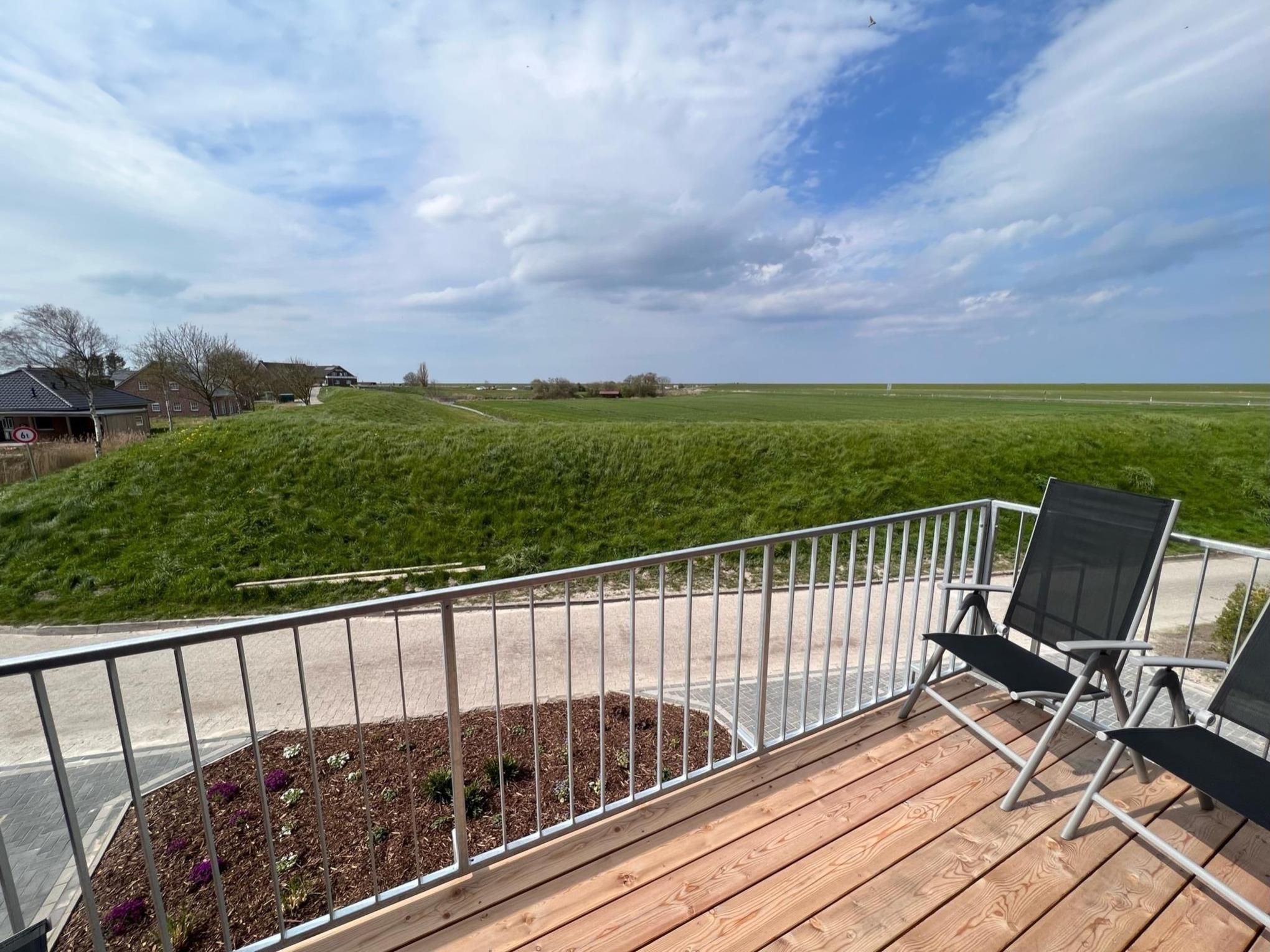 Zugegeben, den Hafen von Nessmersiel sieht man von dem wunderbaren Balkon in der ersten Etage nur, wenn man sich auf die Zehenspitzen stellt und über die beiden Deiche späht. Aber er ist nur ein paar Minuten zu Fuß entfernt und mit ihm die Fährverbindung nach Baltrum, der kleinsten der ostfriesischen Inseln, die mit ihrem Charme, ihrem Flair und den wunderschönen Stränden zu unvergesslichen Tagesausflügen einlädt.