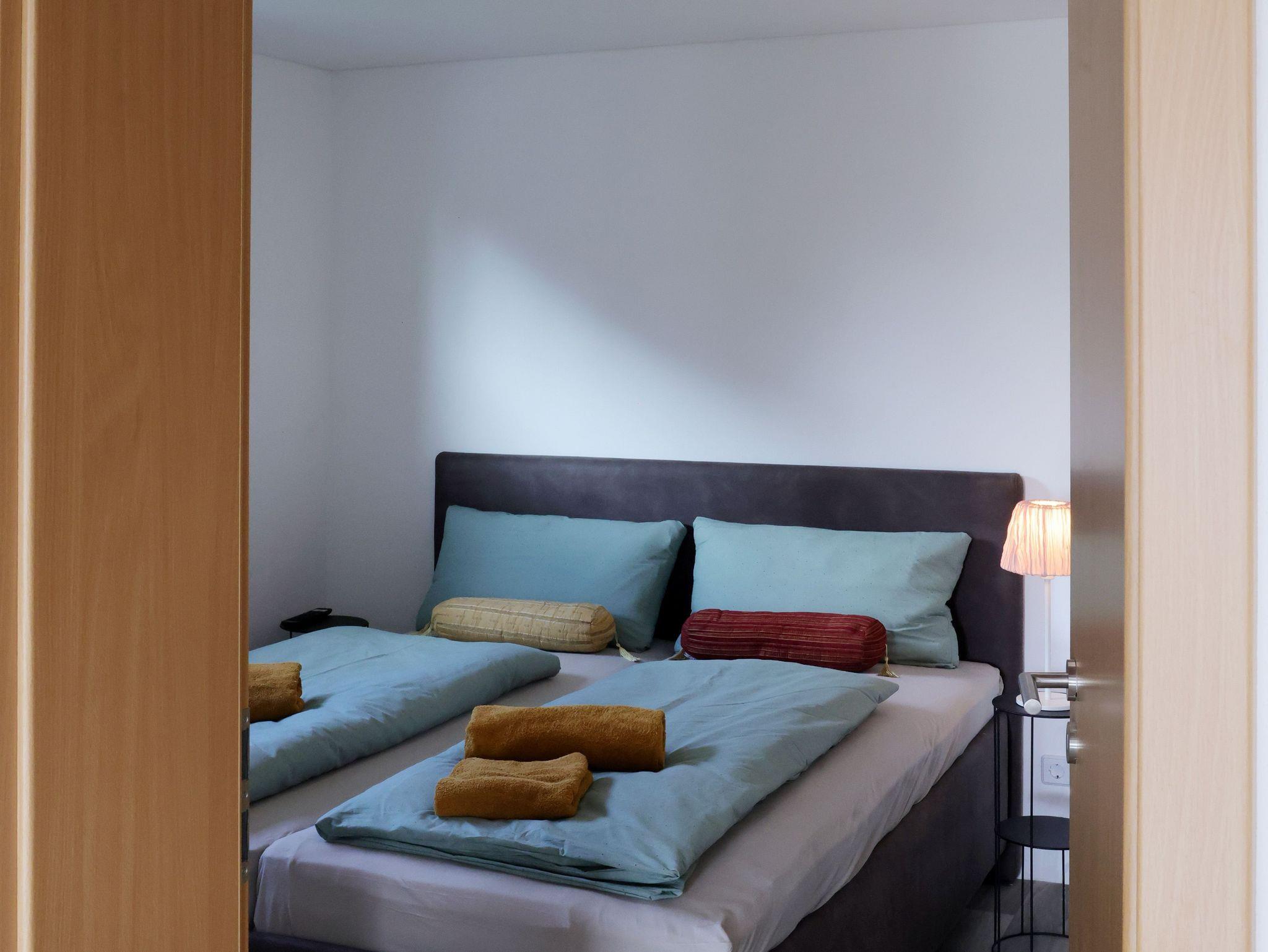 • Ein Schlafzimmer (Fenster Richtung Süden) mit Doppelbett