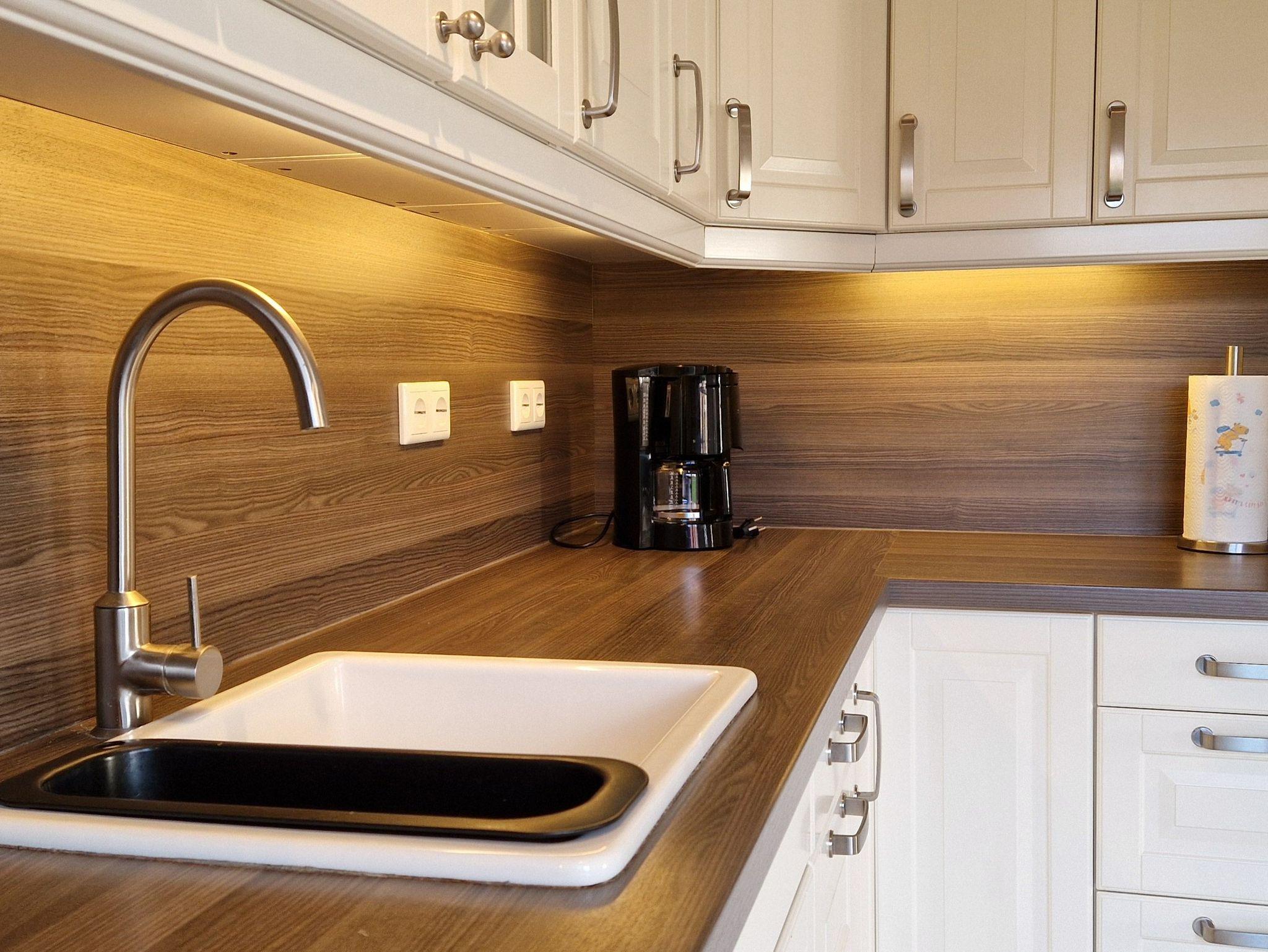 Die ca. 89m² große Ferienwohnung verfügt über einen großzügigen Wohn- und Essbereich mit moderner Küchenzeile. Von hier aus haben Sie ebenfalls Zugang zum Garten. Des weiteren finden Sie ein Schlafzimmer mit einem Doppelbett sowie ein Schlafzimmer mit zwei Einzelbetten. Ein geräumiges Badezimmer mit Badewanne, Dusche und WC rundet diese komfortable Wohnung ab. Die Böden sind mit Laminat und Fliesen, die Fenster mit Rolläden ausgestattet. WLAN steht Ihnen kostenlos zur Verfügung.