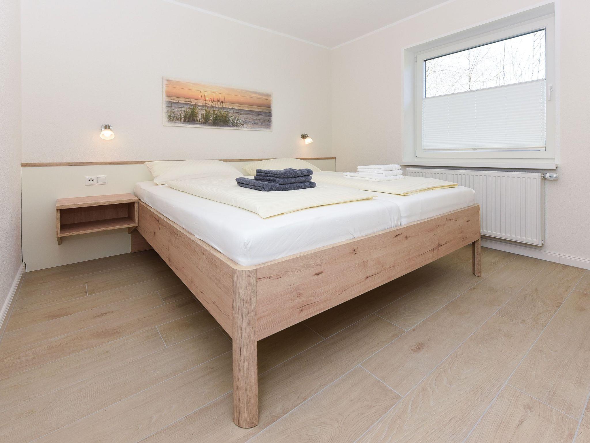 Größe ca. 60 Quadratmeter, Wohnraum mit integrierter Küche und Essgruppe, Schlafzimmer, zweites separates Schlafzimmer, Badezimmer mit Dusche, Waschtisch und WC, Erdgeschoss, Terrasse, optimal für 2 bis 4 Personen und zusätzlich ein Kleinkind.