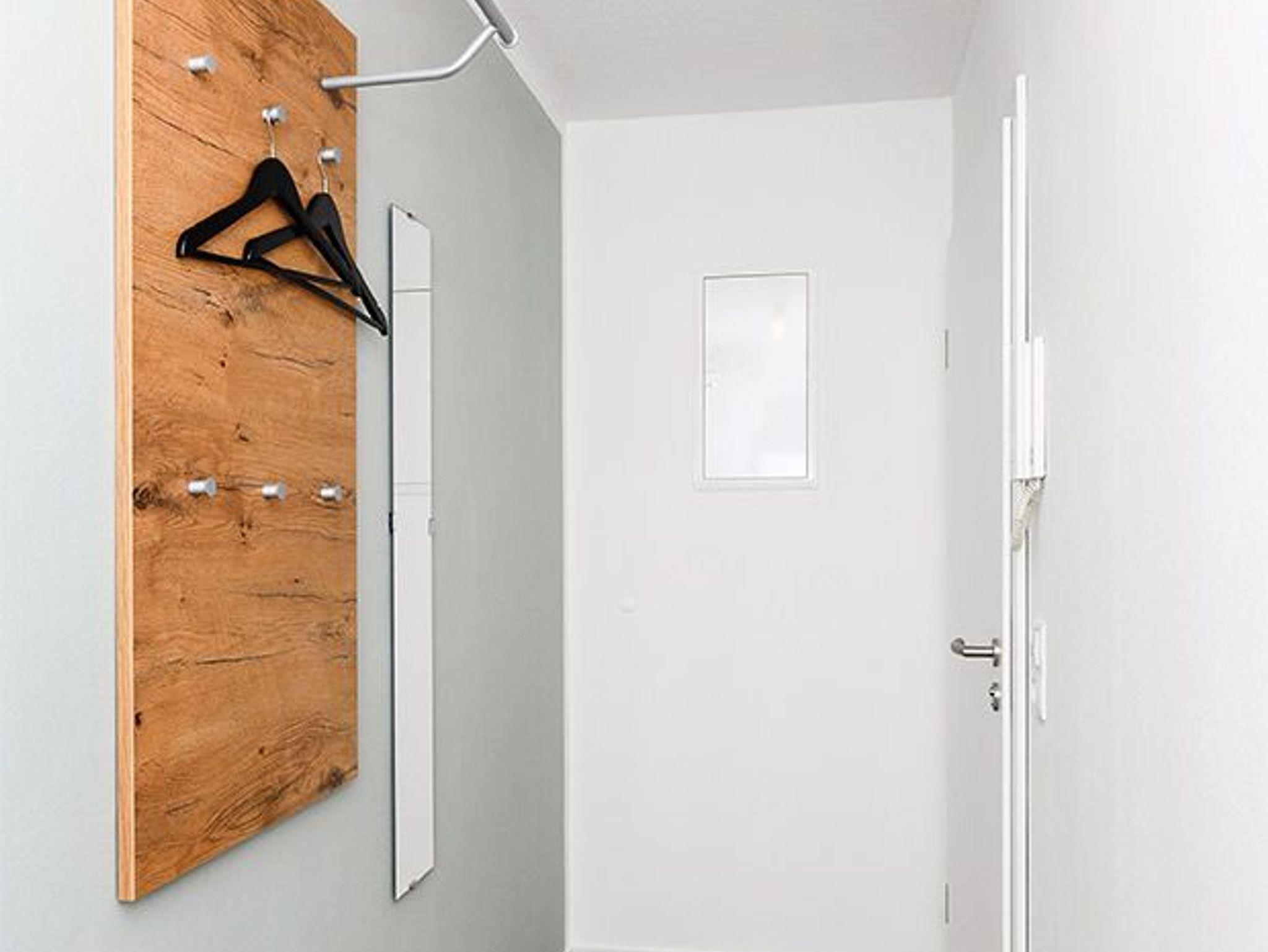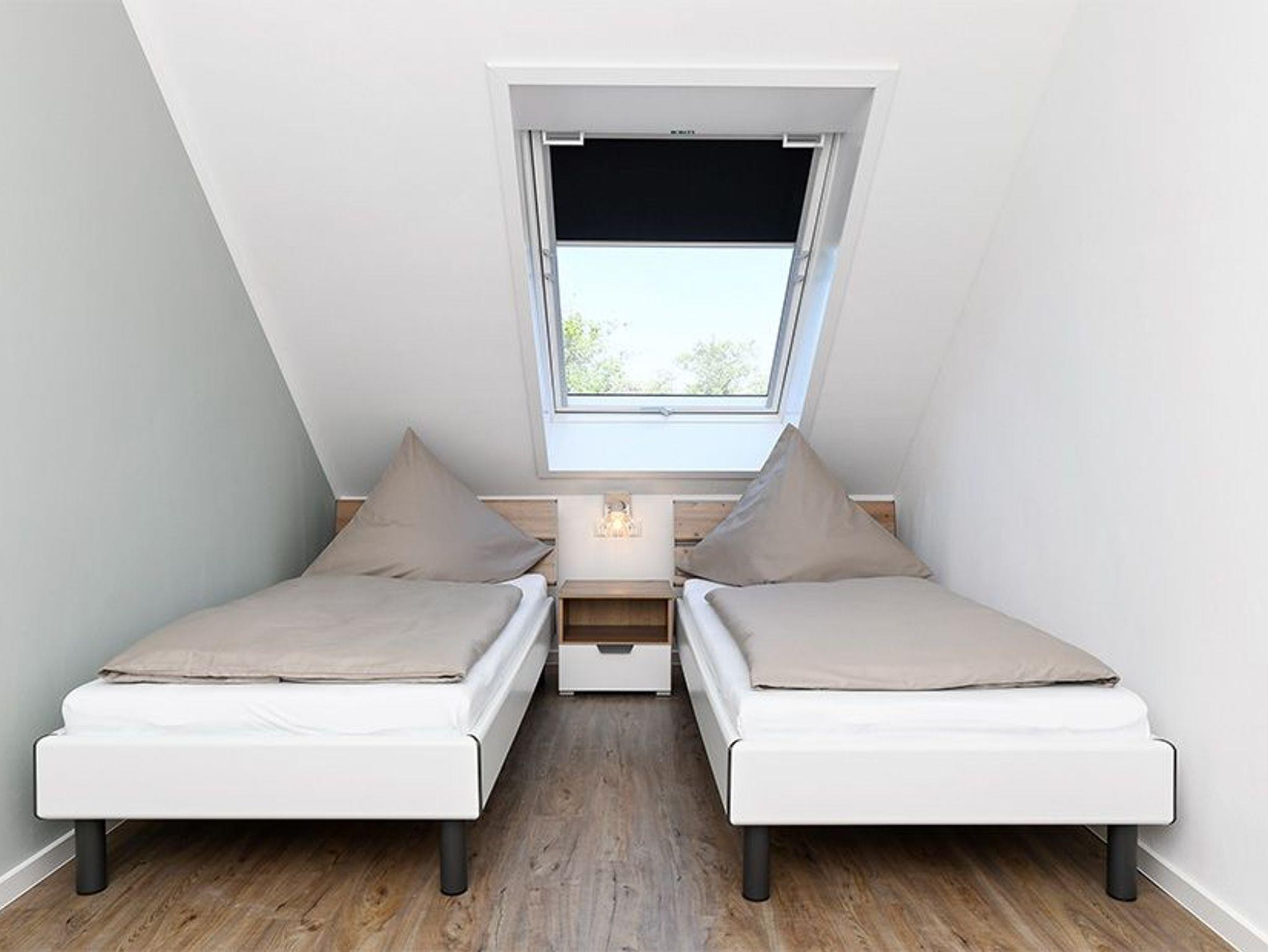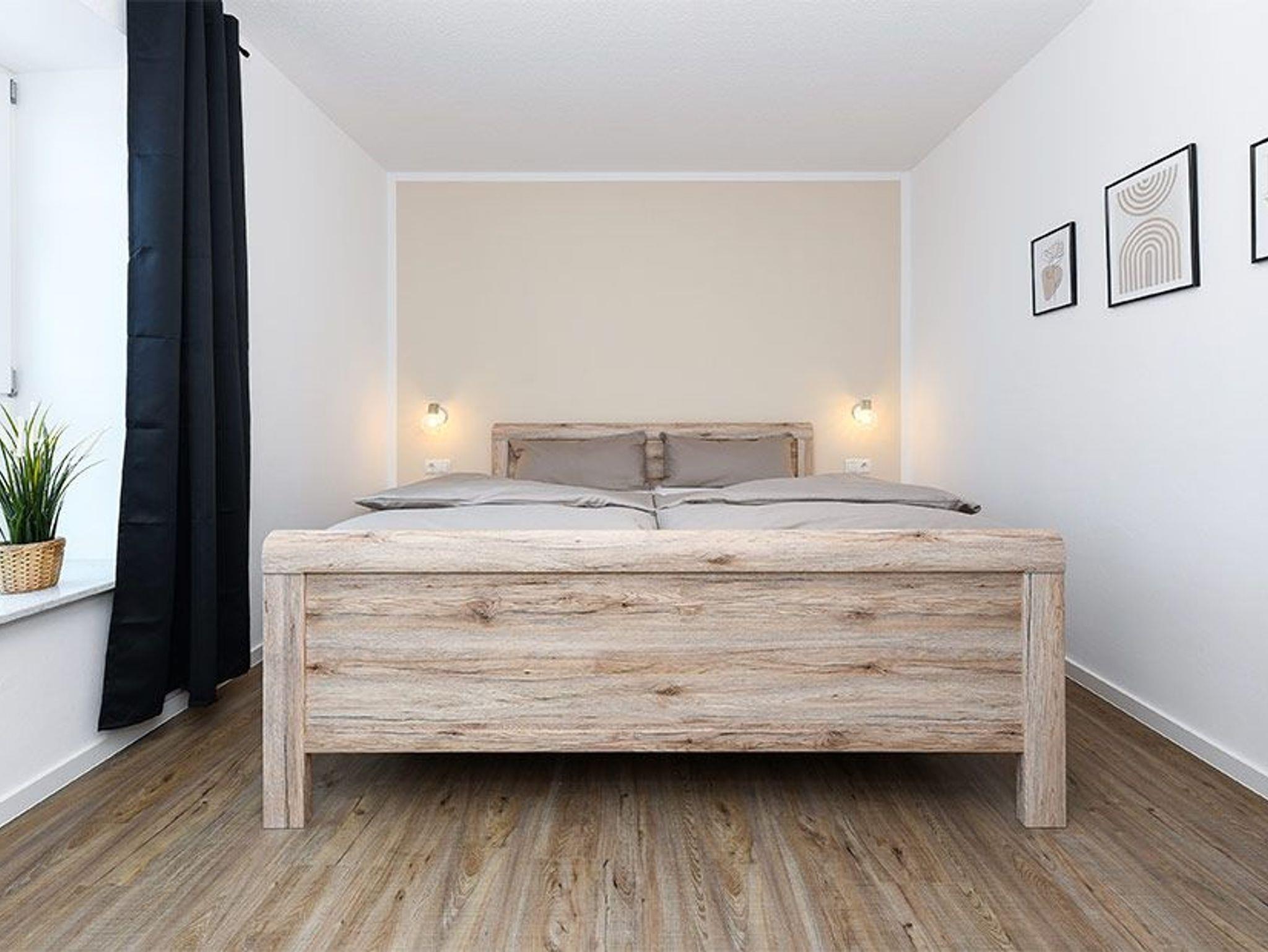 Größe ca. 64 Quadratmeter. Wohnraum mit integrierter Küche. Schlafzimmer, zweites separates Schlafzimmer/Kinderzimmer, Badezimmer mit Dusche, Waschtisch und WC, Obergeschoss, optimal für 2 bis 4 Personen.