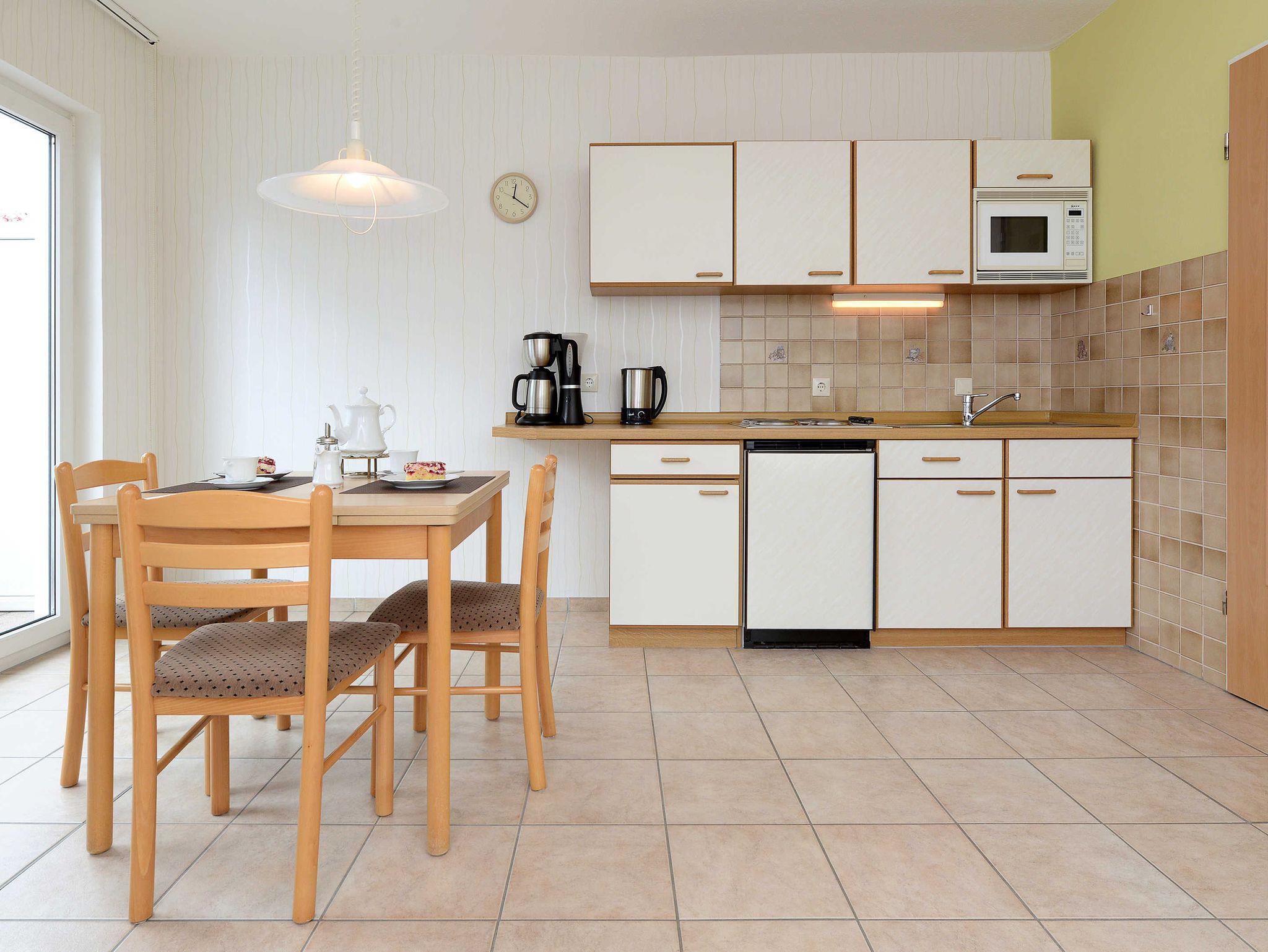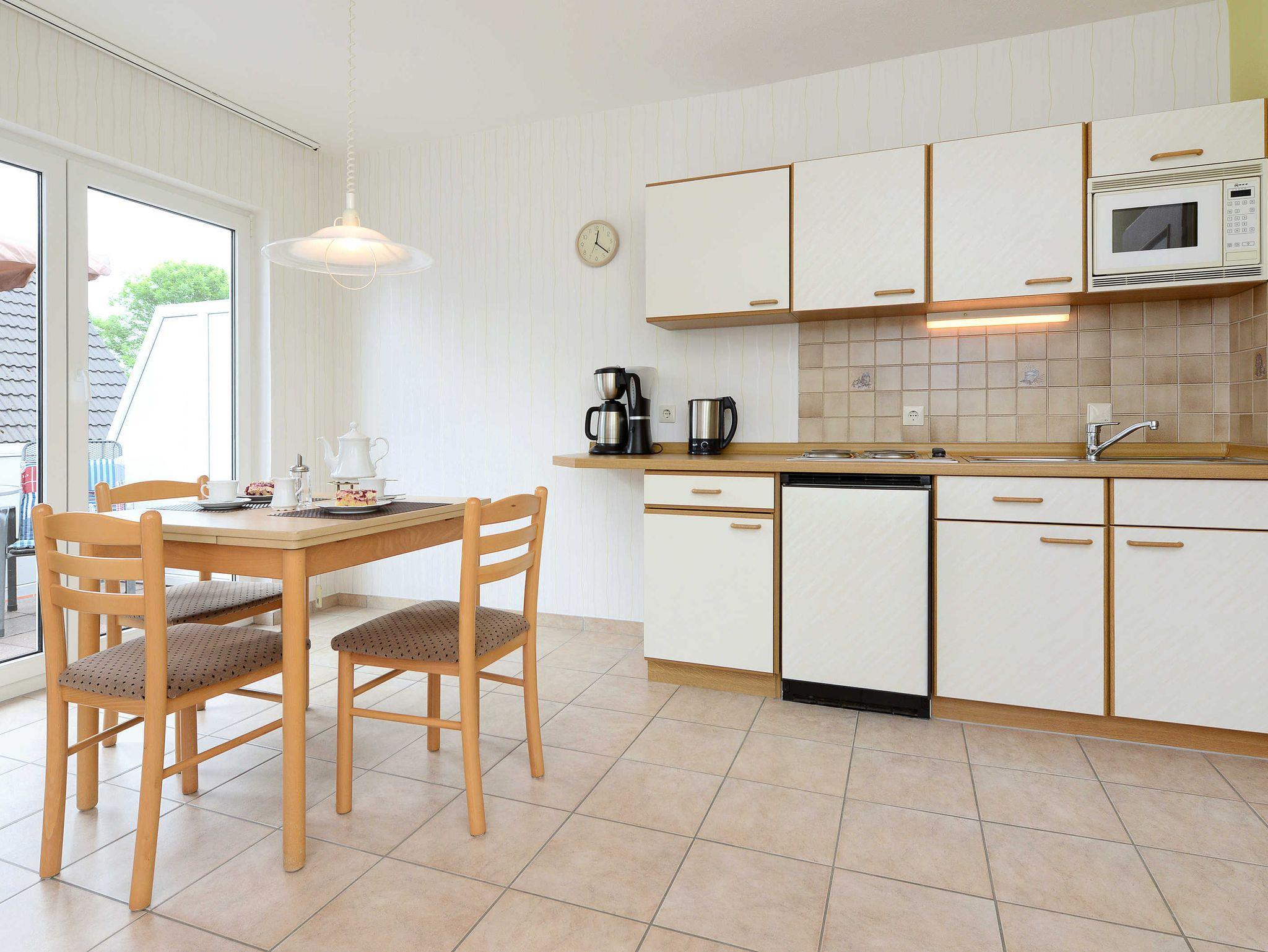 Alle Wohnungen haben entweder eine Terrasse oder einen Balkon. Ein schöner großer Garten steht Ihnen ebenfalls zur Verfügung. Natürlich gibt es in allen Wohnungen voll ausgerüstete moderne Einbauküchen und alles, was man überhaupt im Urlaub benötigen könnte. Jede Wohnung verfügt über eine Mikrowelle, Geschirrspüler ist in der größeren Wohnung vorhanden und Waschmaschine sowie Wäschetrockner stehen für Sie im Waschraum zur Verfügung.